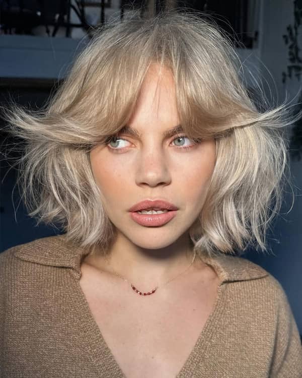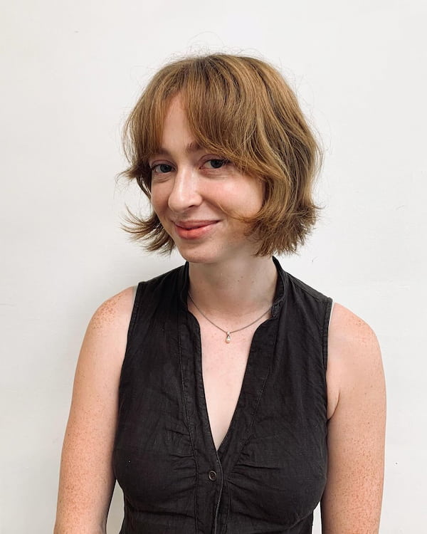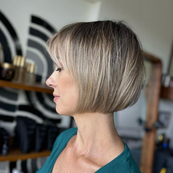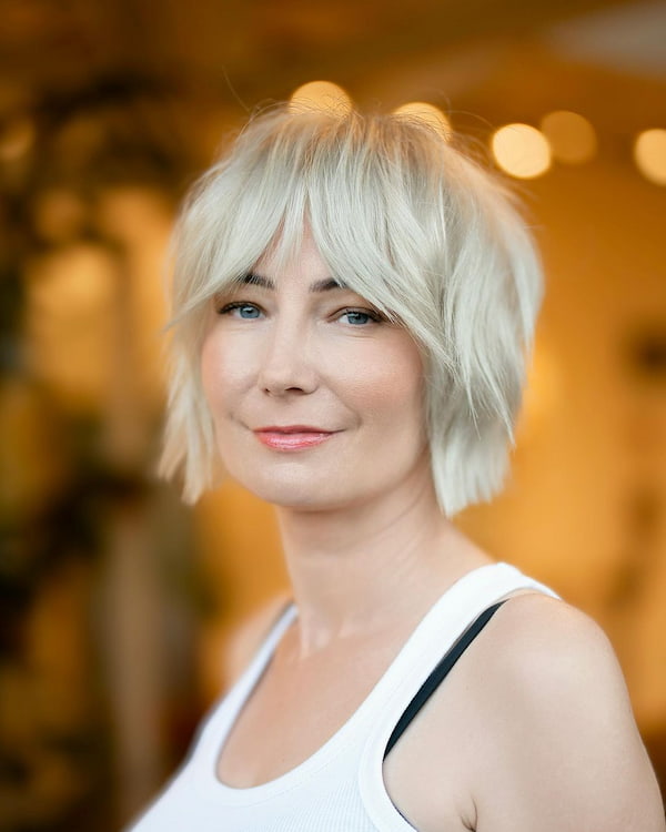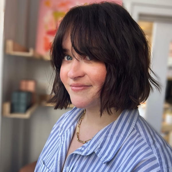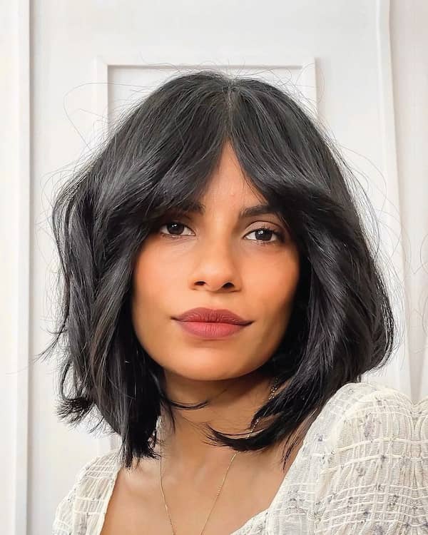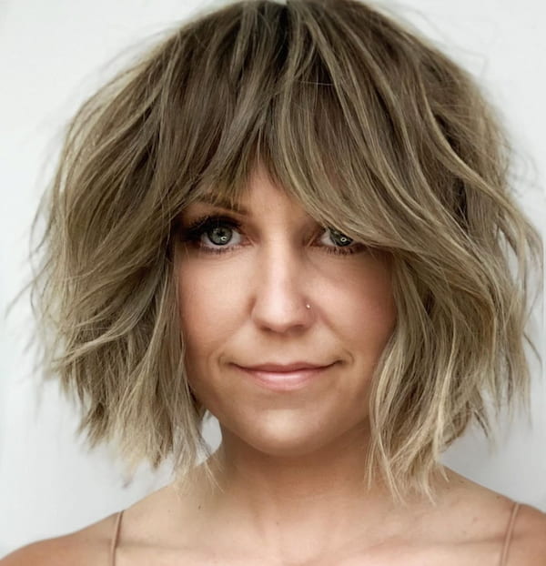 This playful yet sophisticated style combines layers and bangs for the ultimate modern bob.