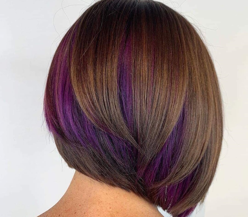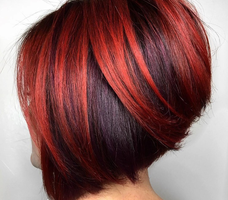 Stacked bobs have been popular forever, especially with middle-aged women. To add some drama to your stacked bob, try mixing up the highlights and lowlights to give yourself a lot of color.