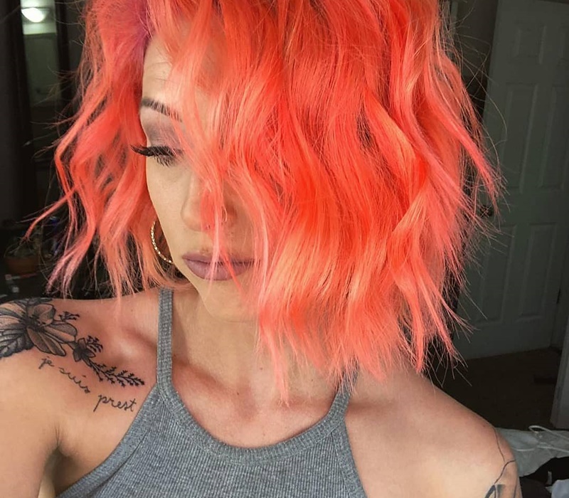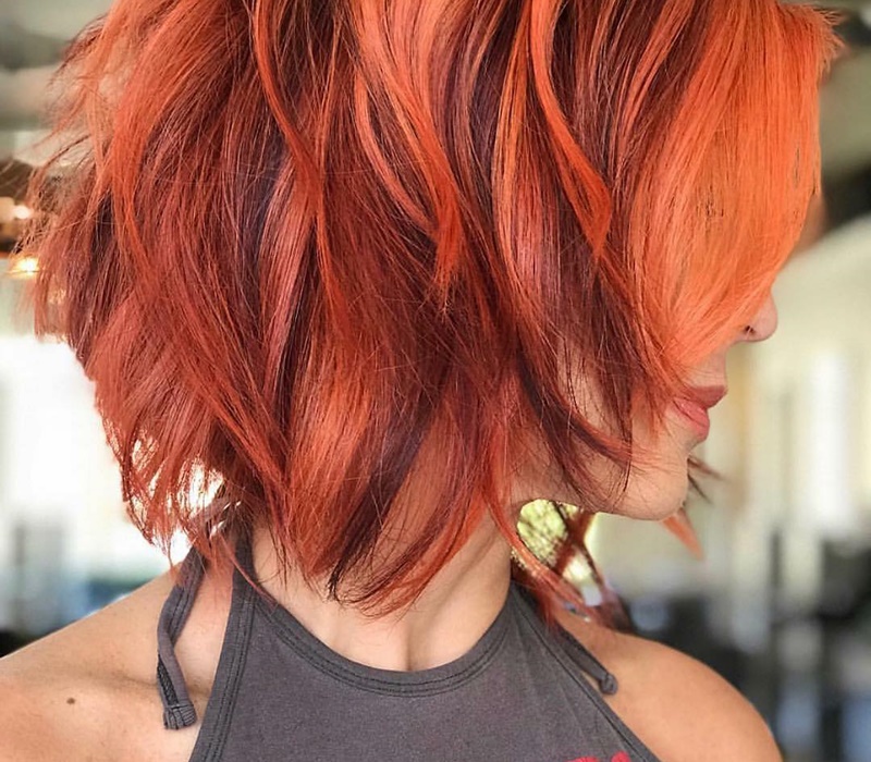 Adding a touch of orange to your hair gives you so much spunk and sass. This bob has a mix of light orange and dark reds, which creates a ton of texture and definition.