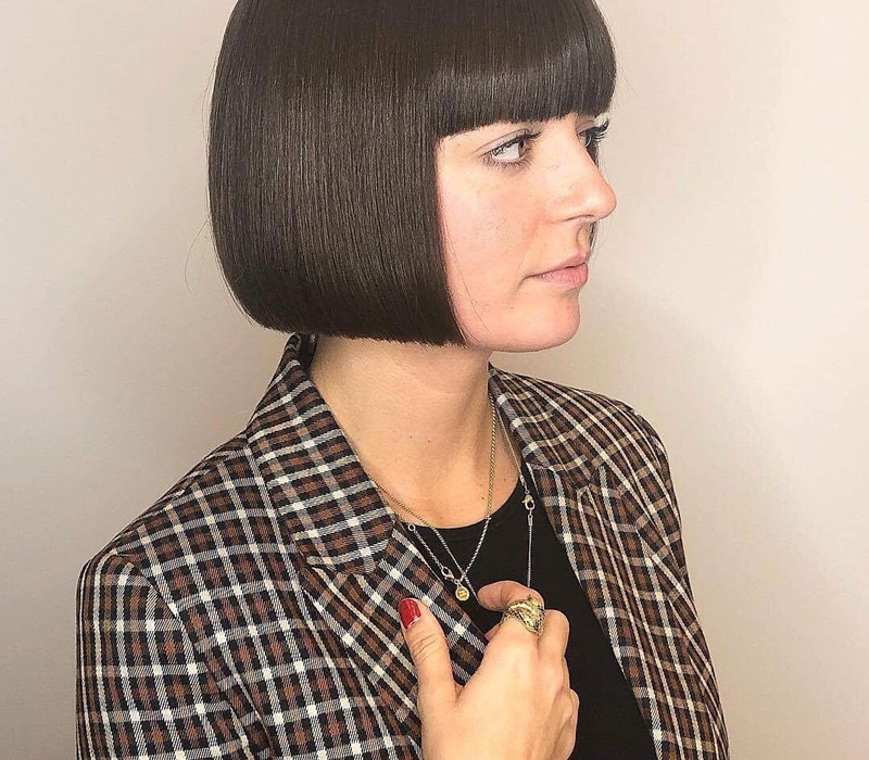 You can wear your bob super blunt and match it with some stunning long bangs that give you a bit of dimension.