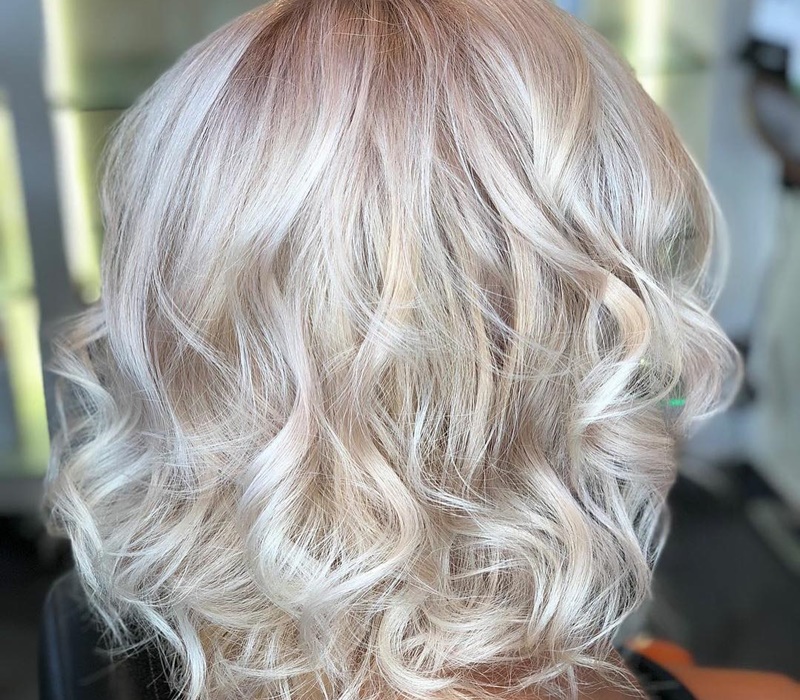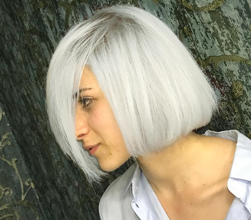 You can get super shiny white hair like in this photo and rock your bob in a beautiful wavy style. Don’t be afraid of change!