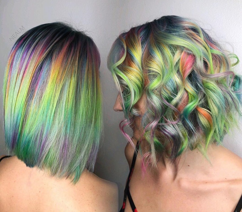 Rainbow hair looks great on everyone, and trust me, you will be turning heads left and right. Whether you wear your hair curly or straight, it doesn’t matter with this look.