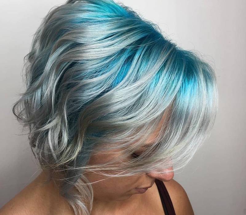 Your shadow roots don’t have to be a natural color. Instead, you can try something different like this stunning blue shadow root that blends into a nice grey color.