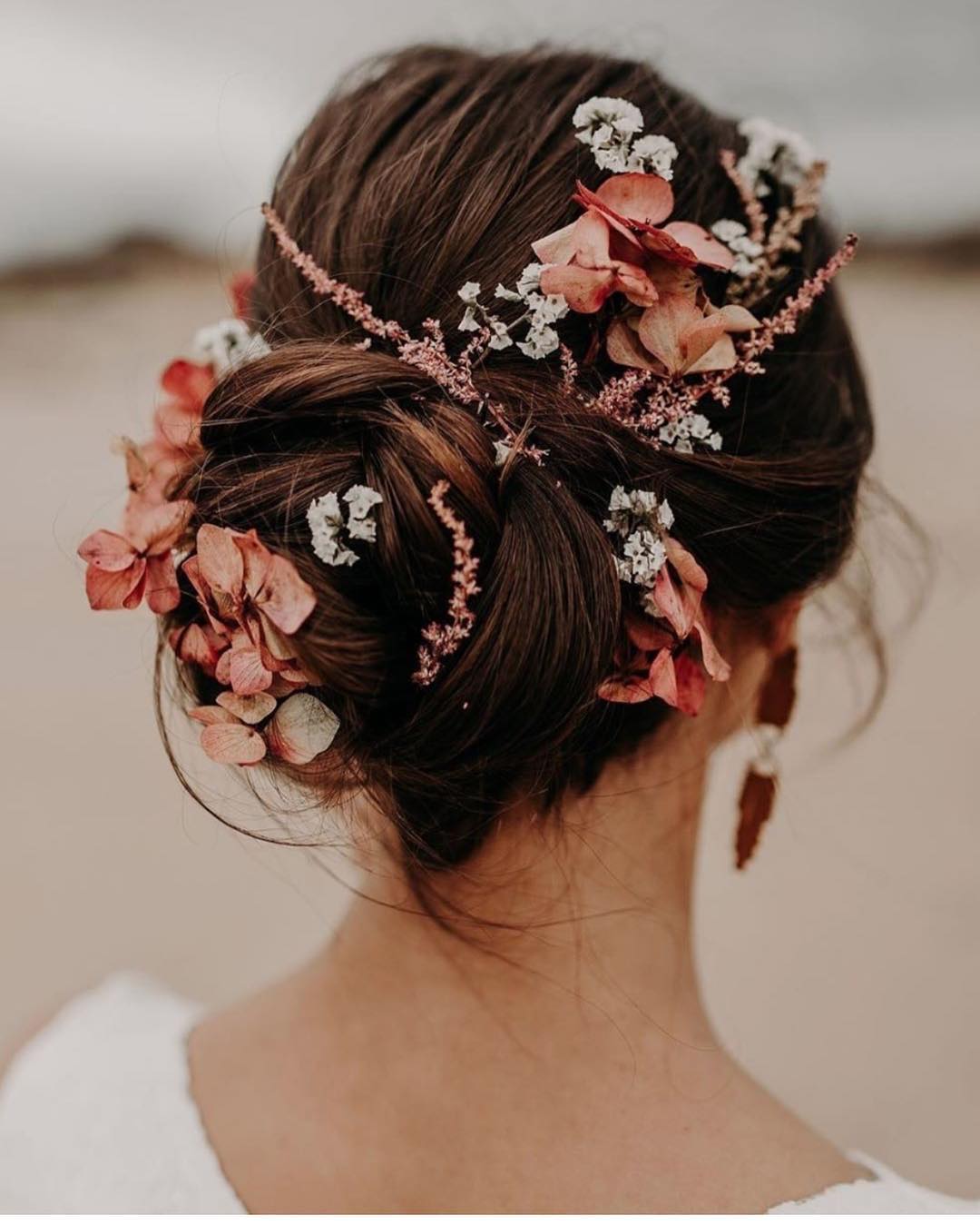 A timeless updo is always a perfect choice for any wedding. You can add a little bit of your own personality to it by placing some gorgeous flowers into your look. It’s such a pretty and romantic touch.