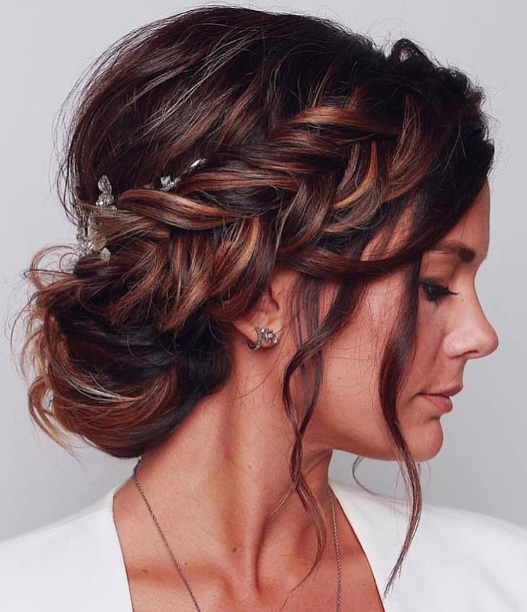 I’m such a fan of this boho look. A simple braid is an amazing way to keep your hair out of your face while looking totally put-together. When you pair it with a gorgeous low bun, you have the ultimate wedding hairstyle.