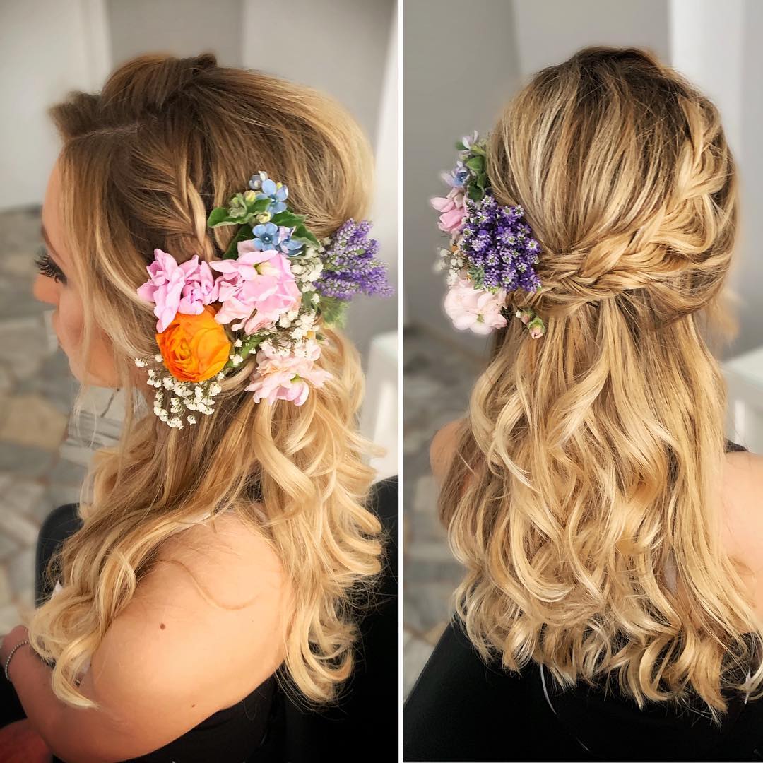 If you’re having a hard time deciding what you love, why not just add them all together? Try this curly-haired look that incorporates braids and a nice flower accent. What’s not to love?!