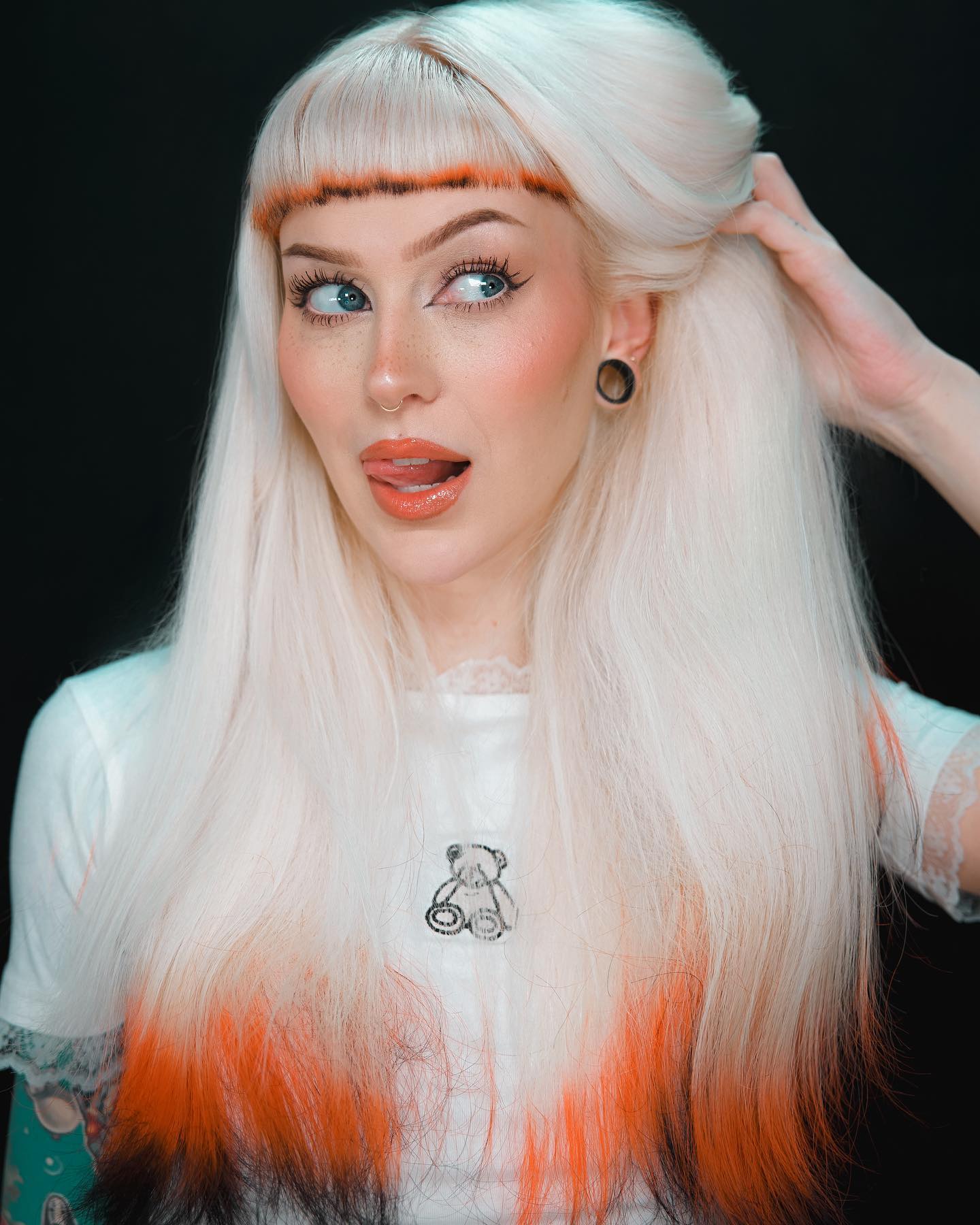 Do you adore hairdos that feel really one-of-a-kind? If you want to bring in a pop of white and orange at the same time, this one is for you.