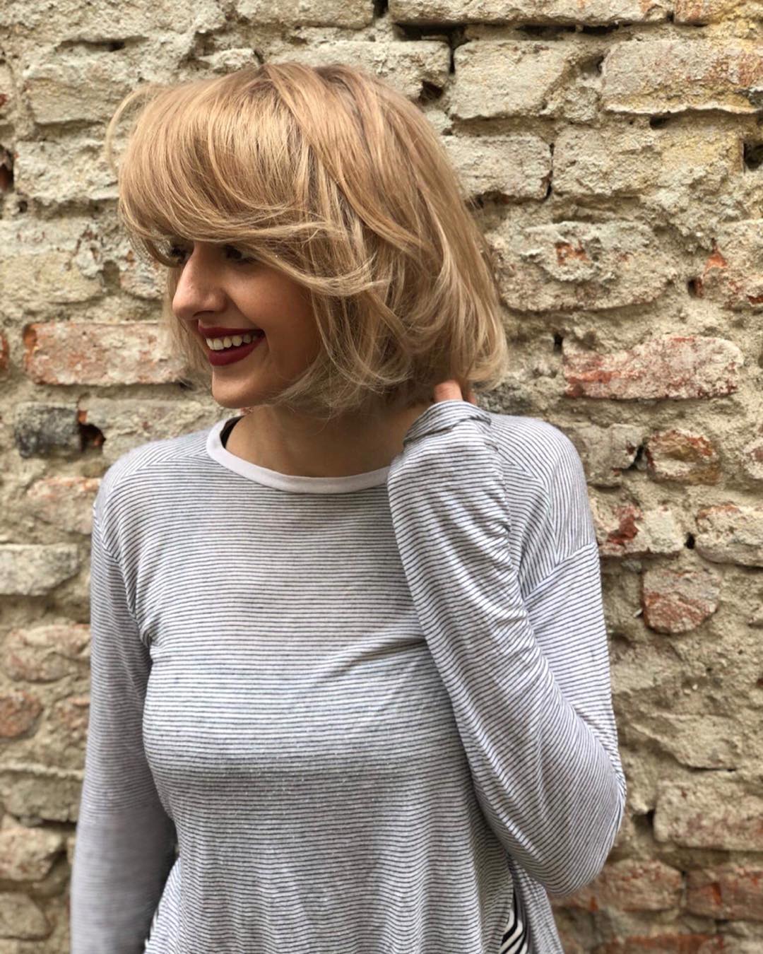 Looking to switch things up? Pairing your messy bob with some bangs is the perfect way to totally change your look. I’m obsessed with this combination.