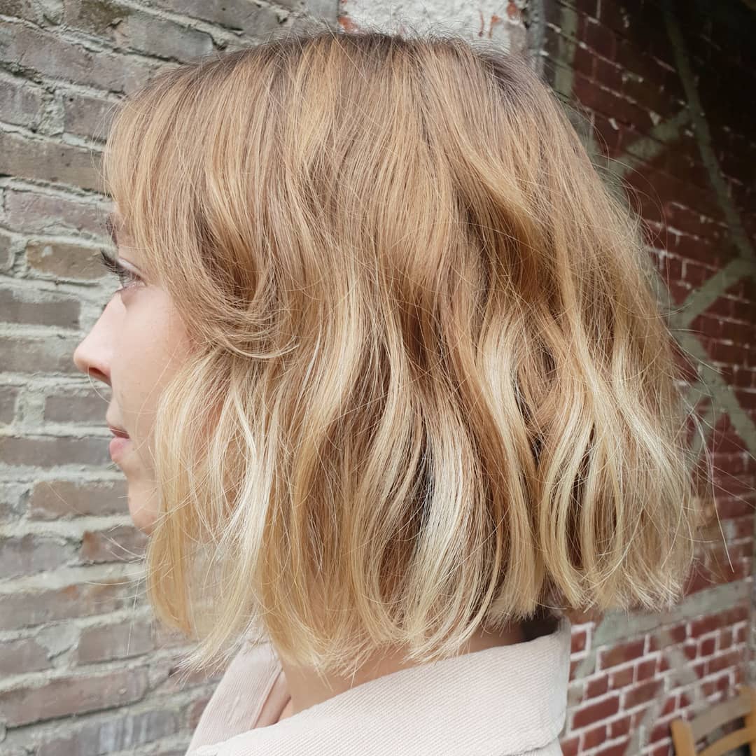 A golden color throughout your hair will only help amplify your messy bob. This hue is just so good.