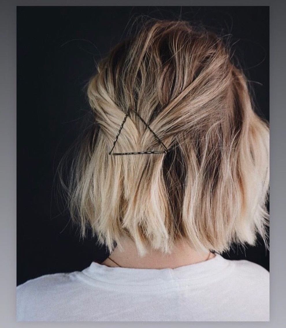 Using a few bobby pins to create a design is such a perfect way to easily show off your messy bob. I think this is such a sweet touch.