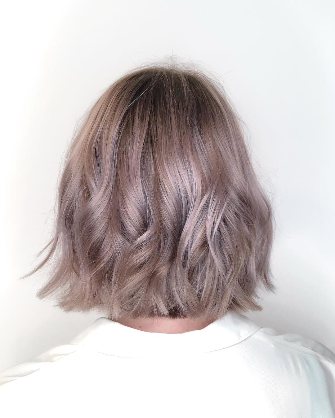 This gorgeous dusty pink color is so on-trend right now. When paired with a messy bob, it’s a definite showstopper.