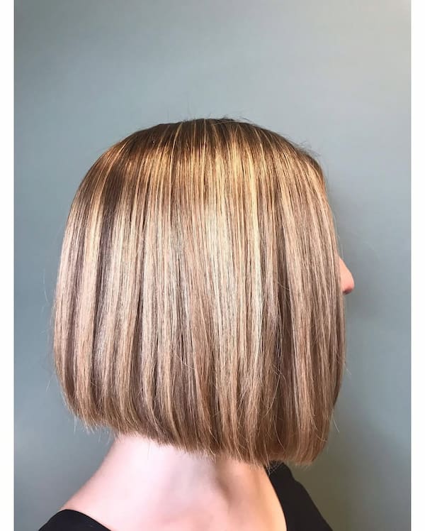 I am personally obsessing over how the blend of balayage highlights enhances the beauty of the angles in this bob.