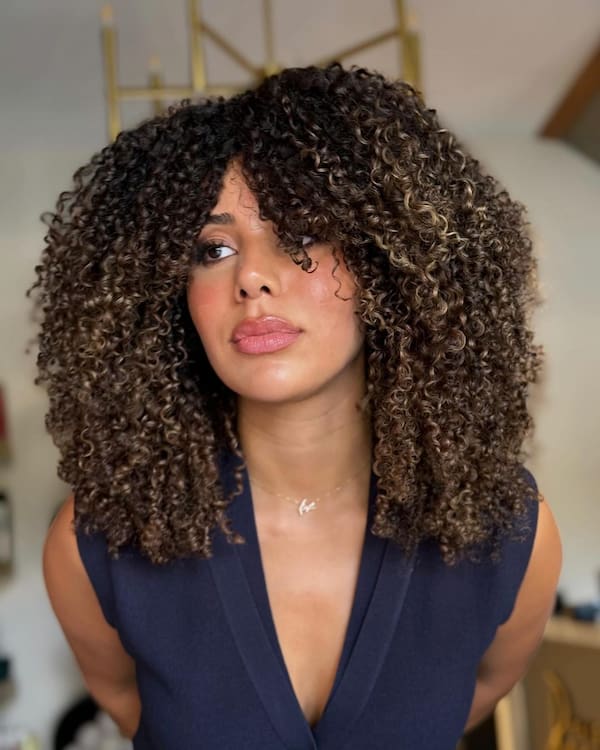 19. Curly Haircut with Full Curly Bangs
