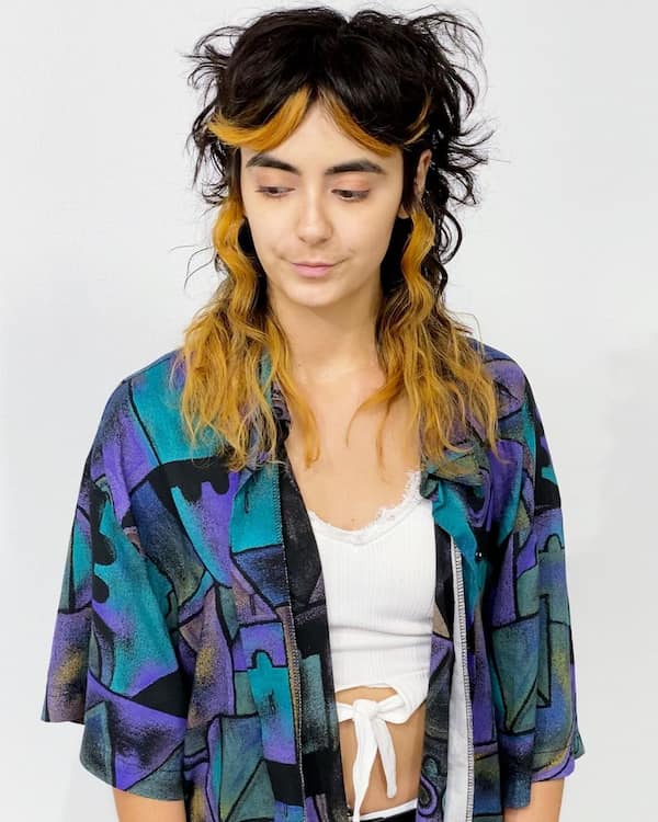 For those who love pushing the boundaries of fashion, micro bangs give a fresh twist to a long, curly mullet. It enhances your fine, thin hair and is such a good option if you want something unique.