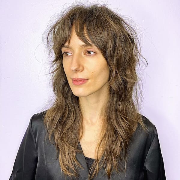 26. Long Messy Shag Haircut with Piecey Bangs