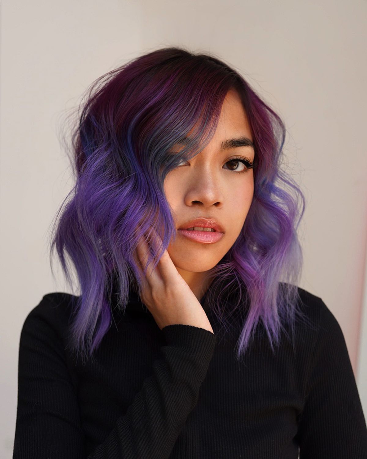 Anyone who likes bright and funky looks is going to enjoy this purple design and other colorful hairdos.