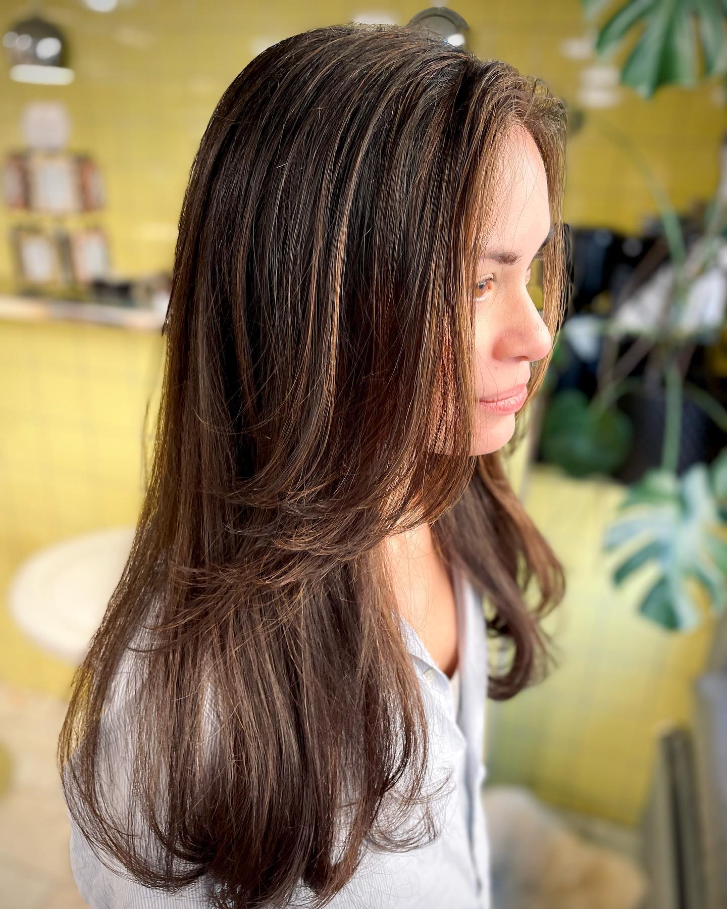 If you have naturally long hair, it’s so easy to transform it. Why not give it a go with this dark brown layered style?