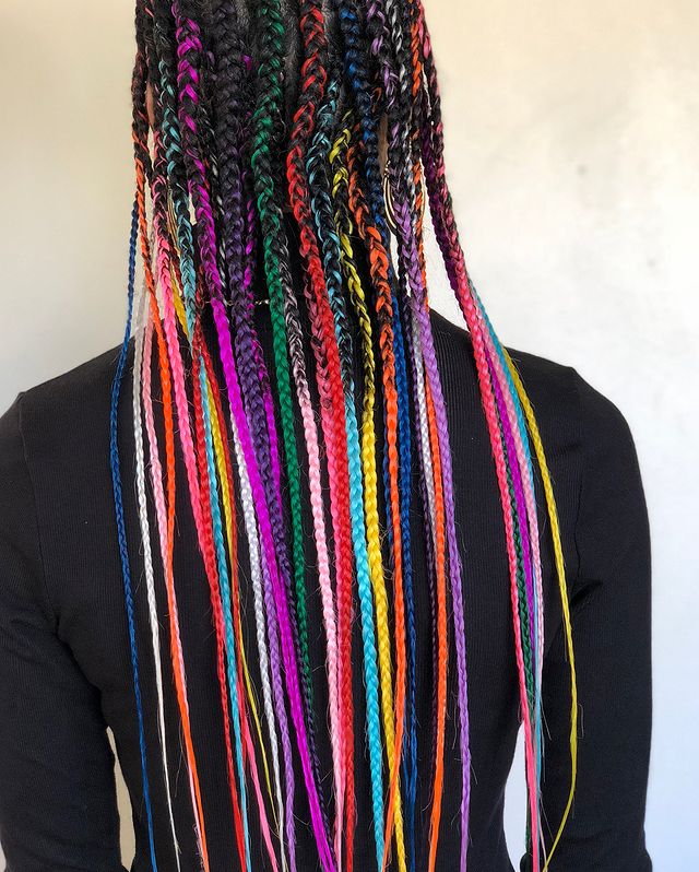 This is such a fun and playful way to style your cornrows. Why stick to one color when you can add the entire rainbow? So cute!