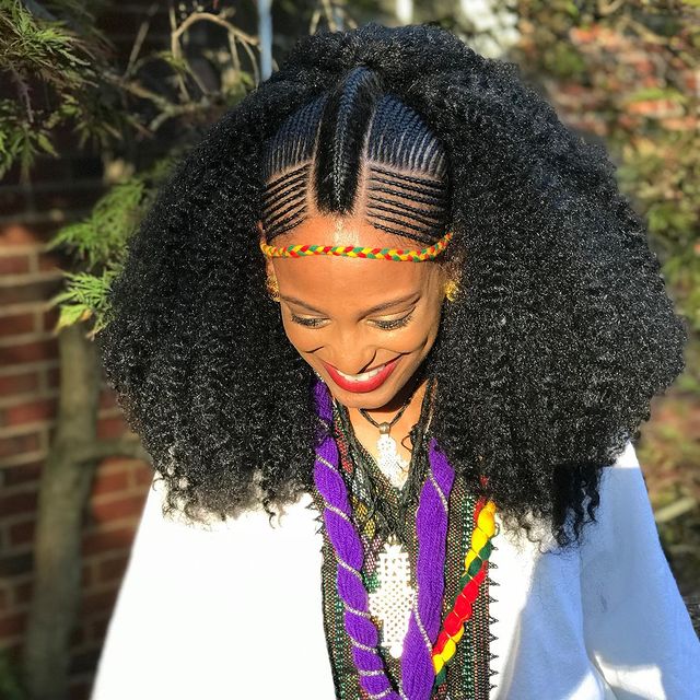 Talk about the best of both worlds! You can cornrow half of your hair and let your natural texture shine through on the other half. So pretty!