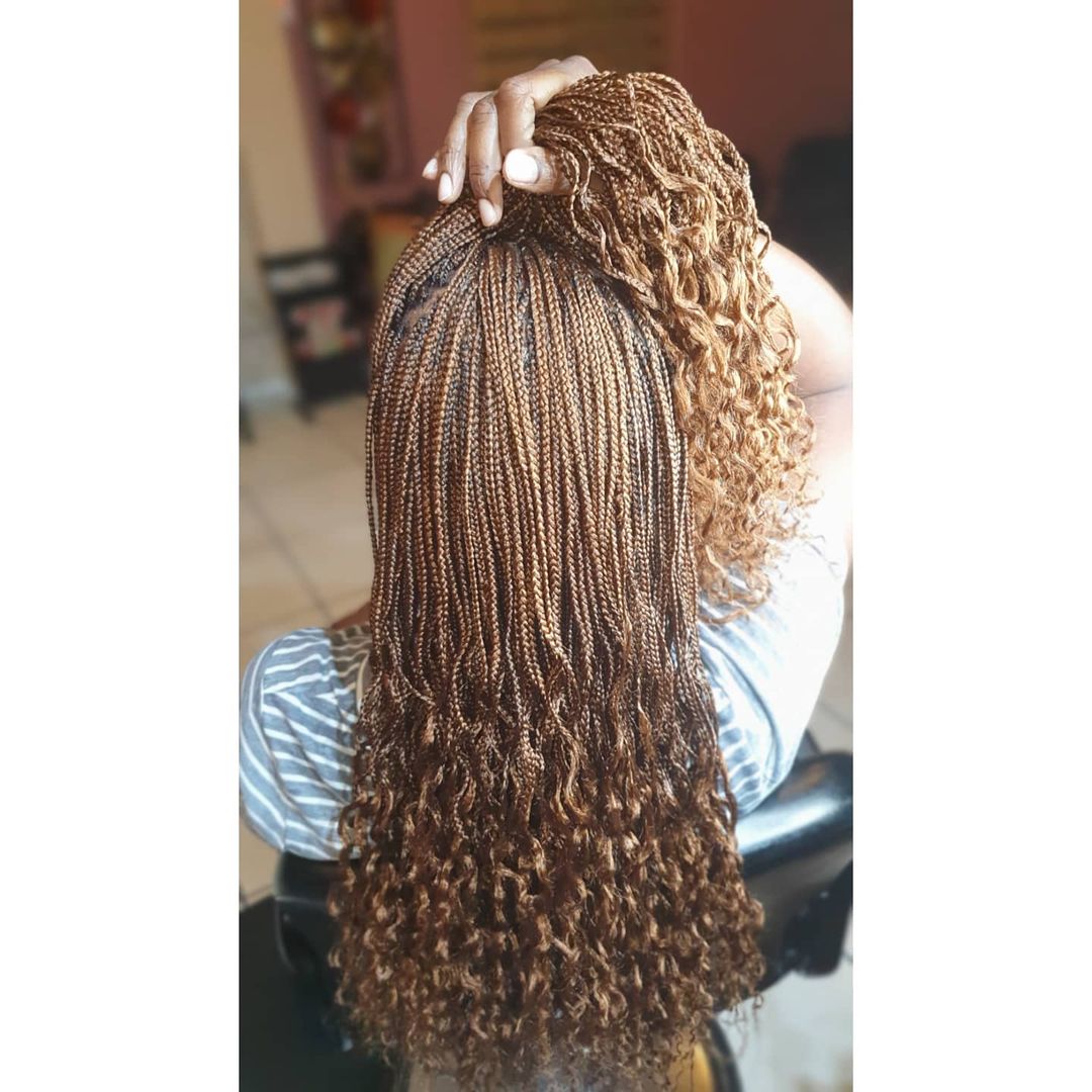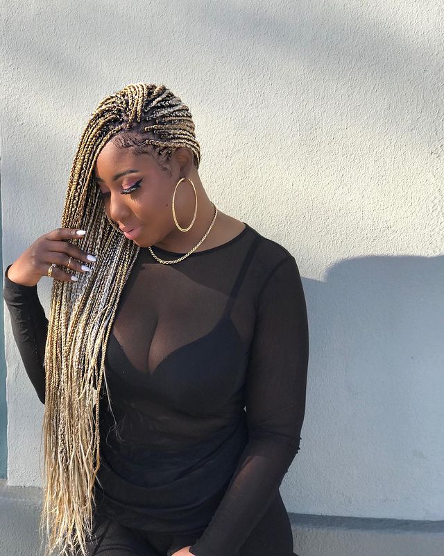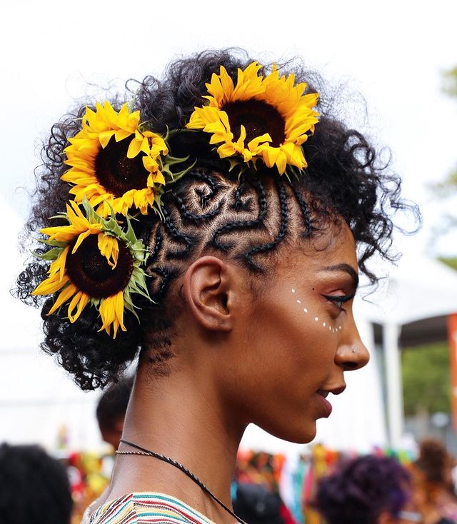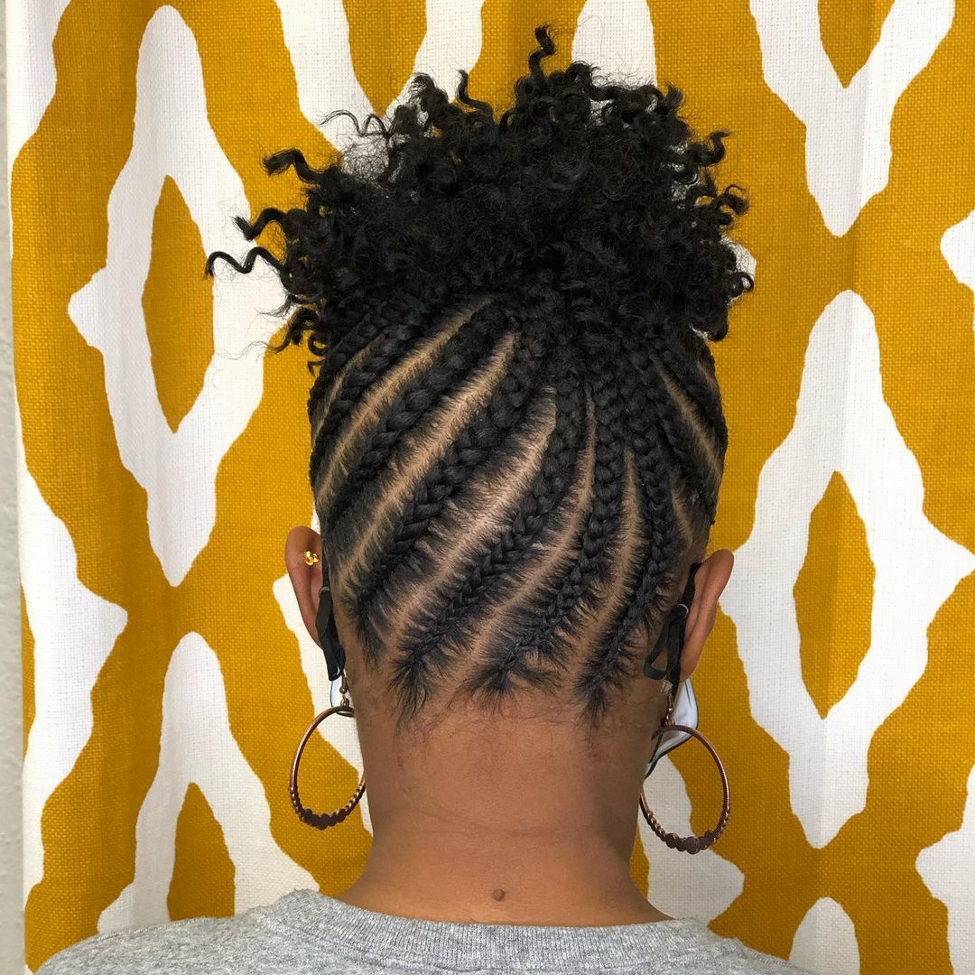 Going with smaller cornrows is always a great style choice. The circular pattern here is so intricate and beautiful, it’s a total showstopper.