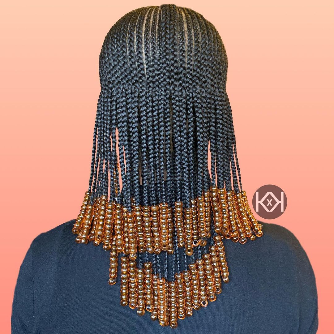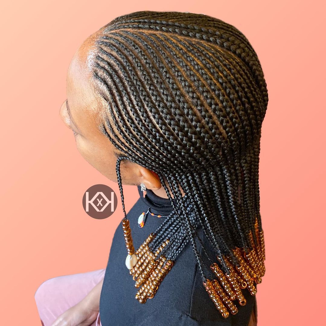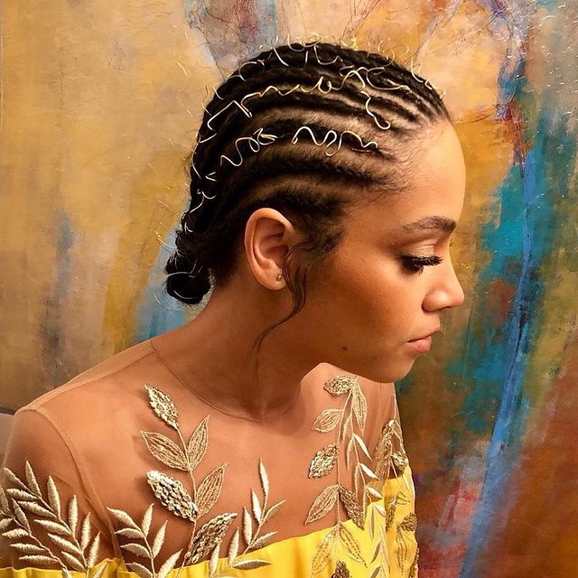 Cornrows are the absolute perfect hairstyle to add a few fun accents to. A little bit of metallic cord or a few beads can really elevate the entire look.