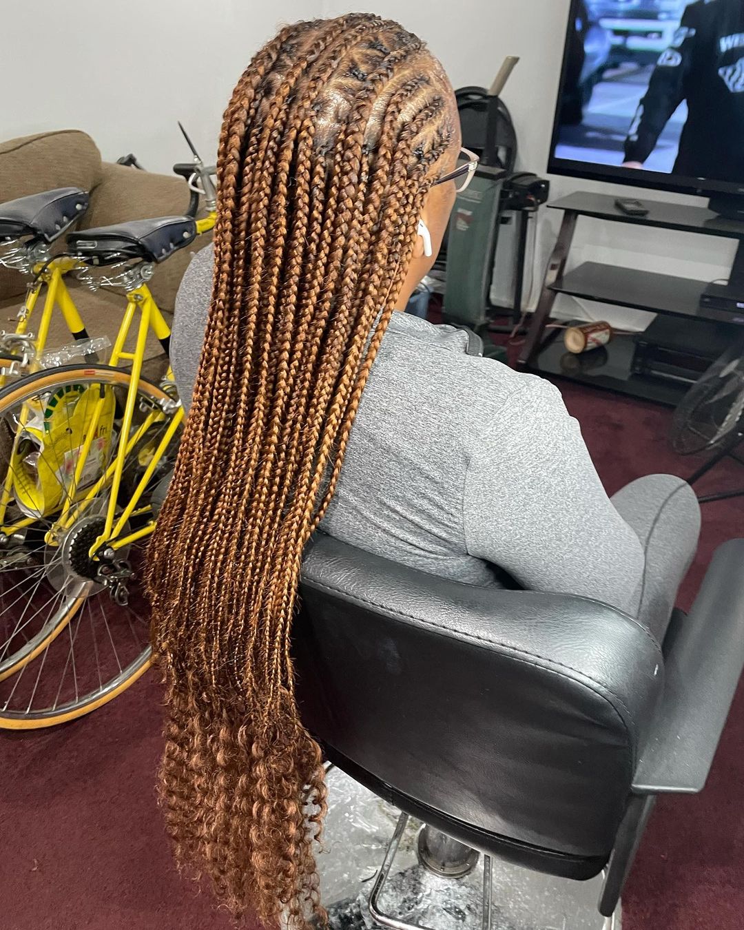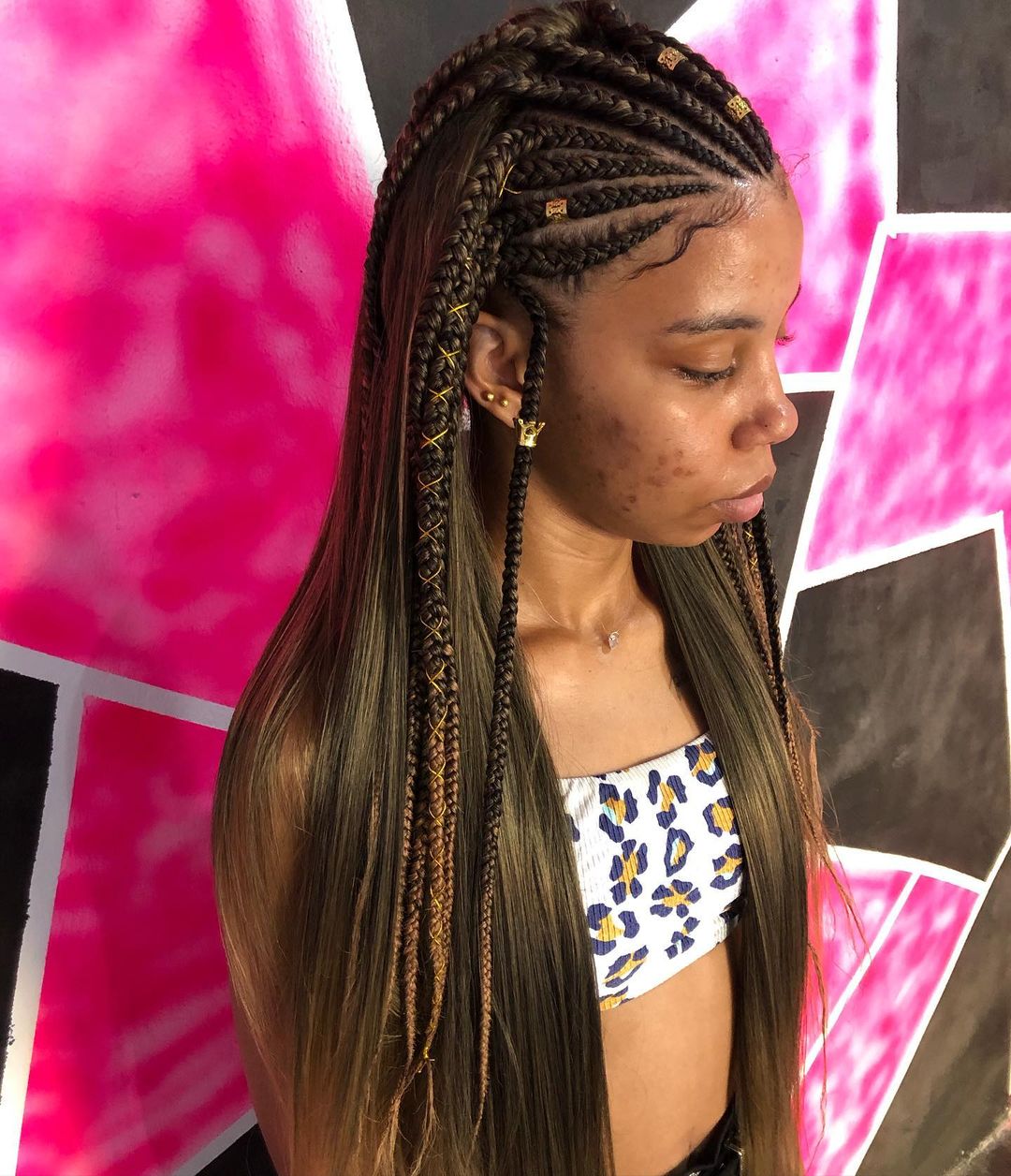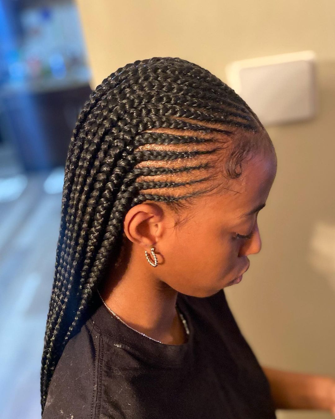 I know that small, sleek, and tight braids like these can be hard to pull off. Make sure you book the best hairstylist you can to get this exact outcome.