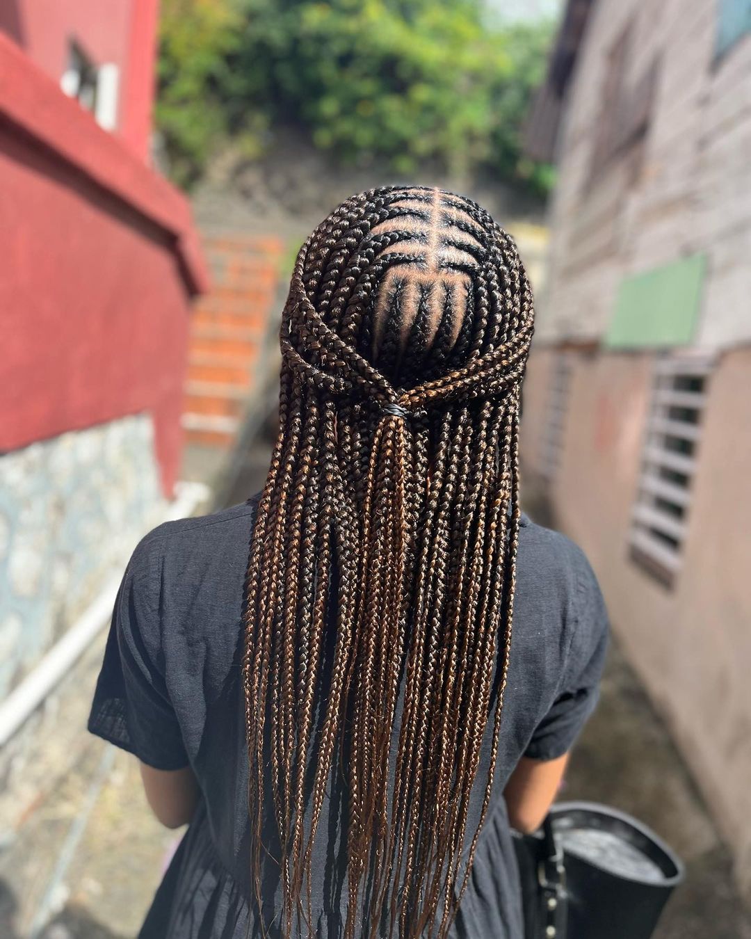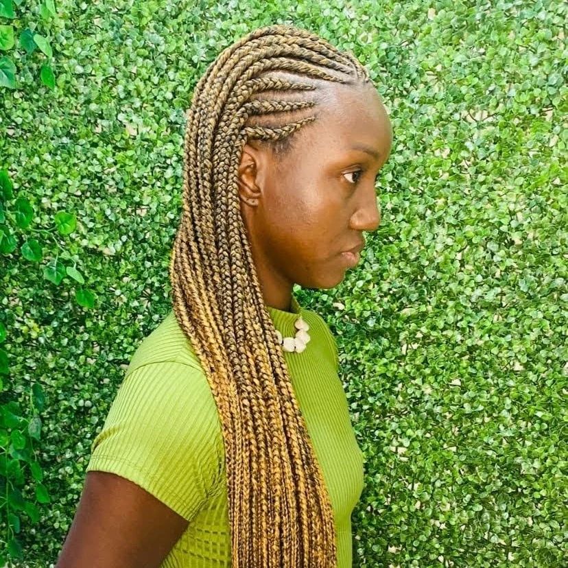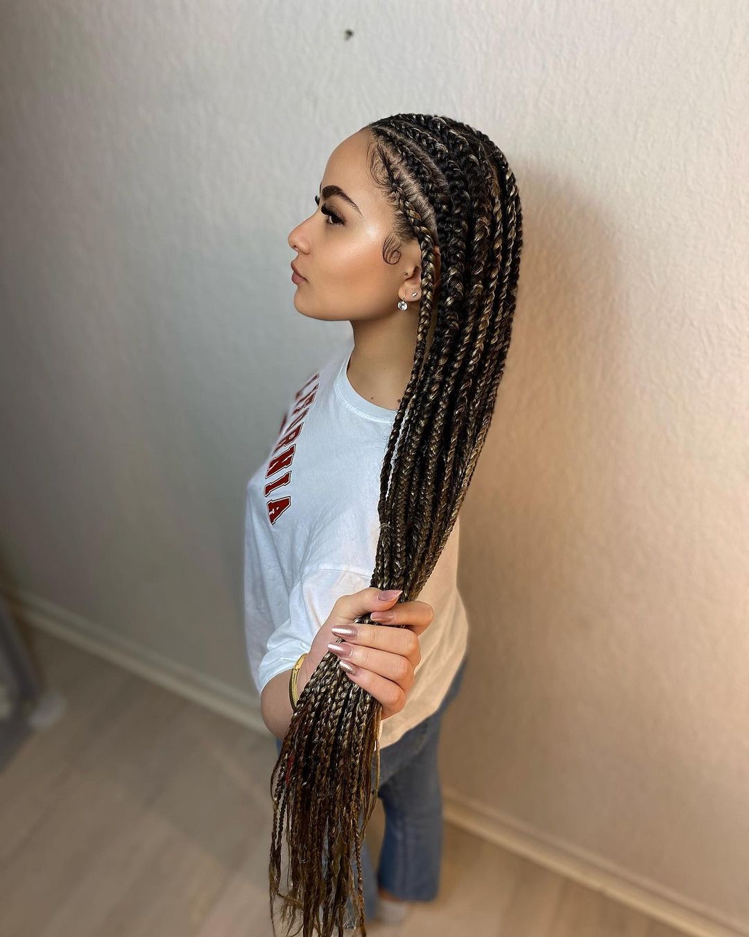 I know that small, sleek, and tight braids like these can be hard to pull off. Make sure you book the best hairstylist you can to get this exact outcome.