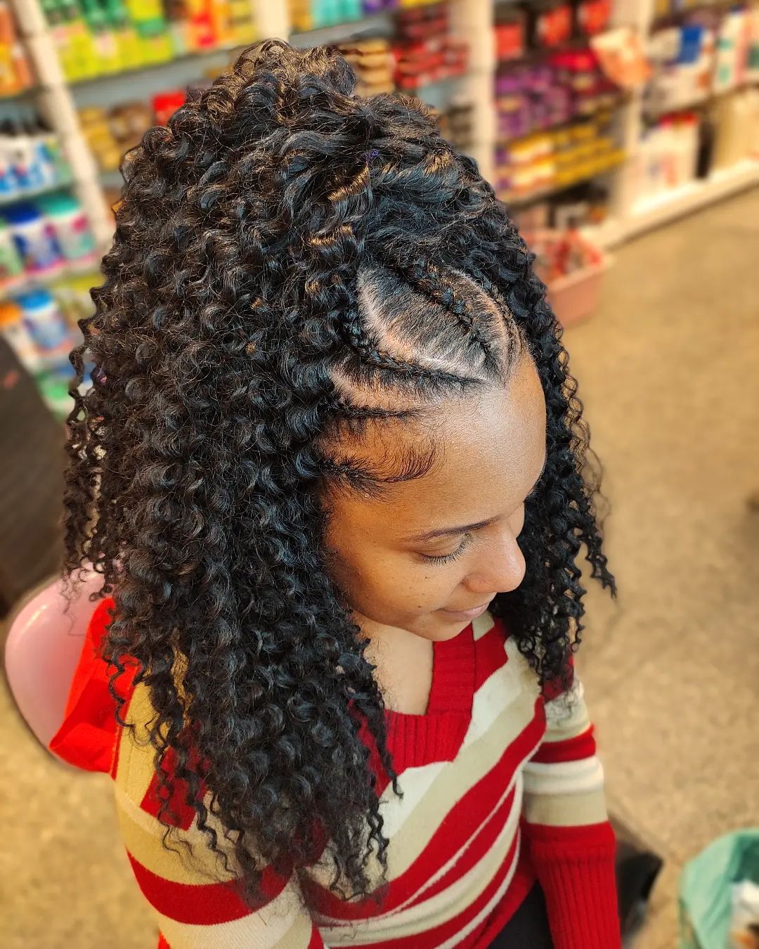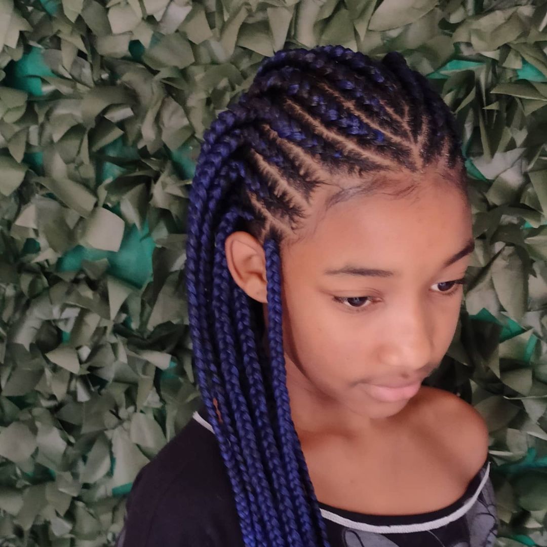The signature look usually involves a cornrow braided right down the center of the head, plus one or more cornrows braided forward toward the face. It’s all brought together with a braid that wraps around the hairline.
