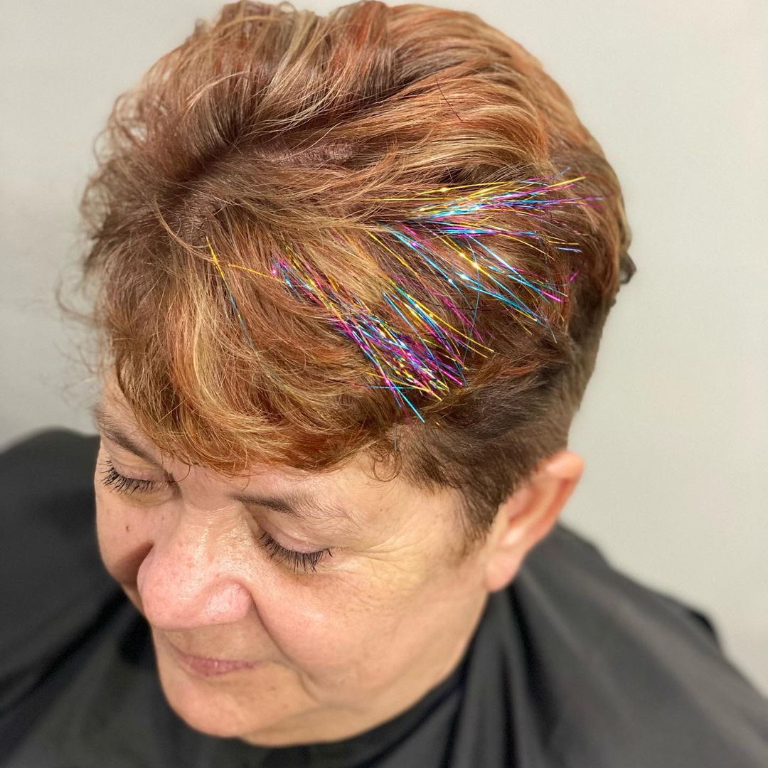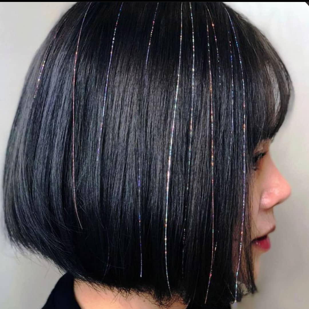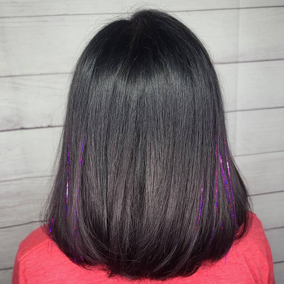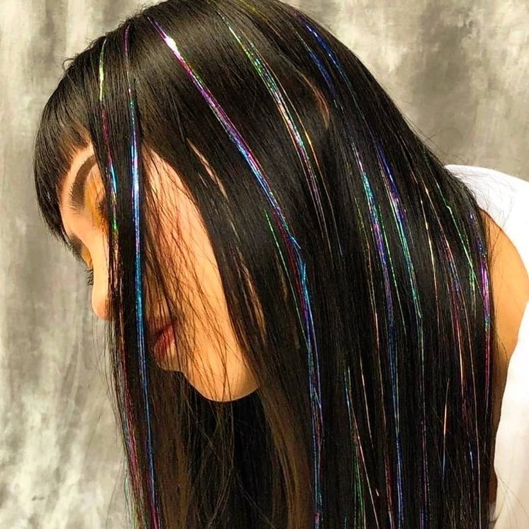 If you’ve already got vivid hair color, adding tinsel will make it look even more incredible.