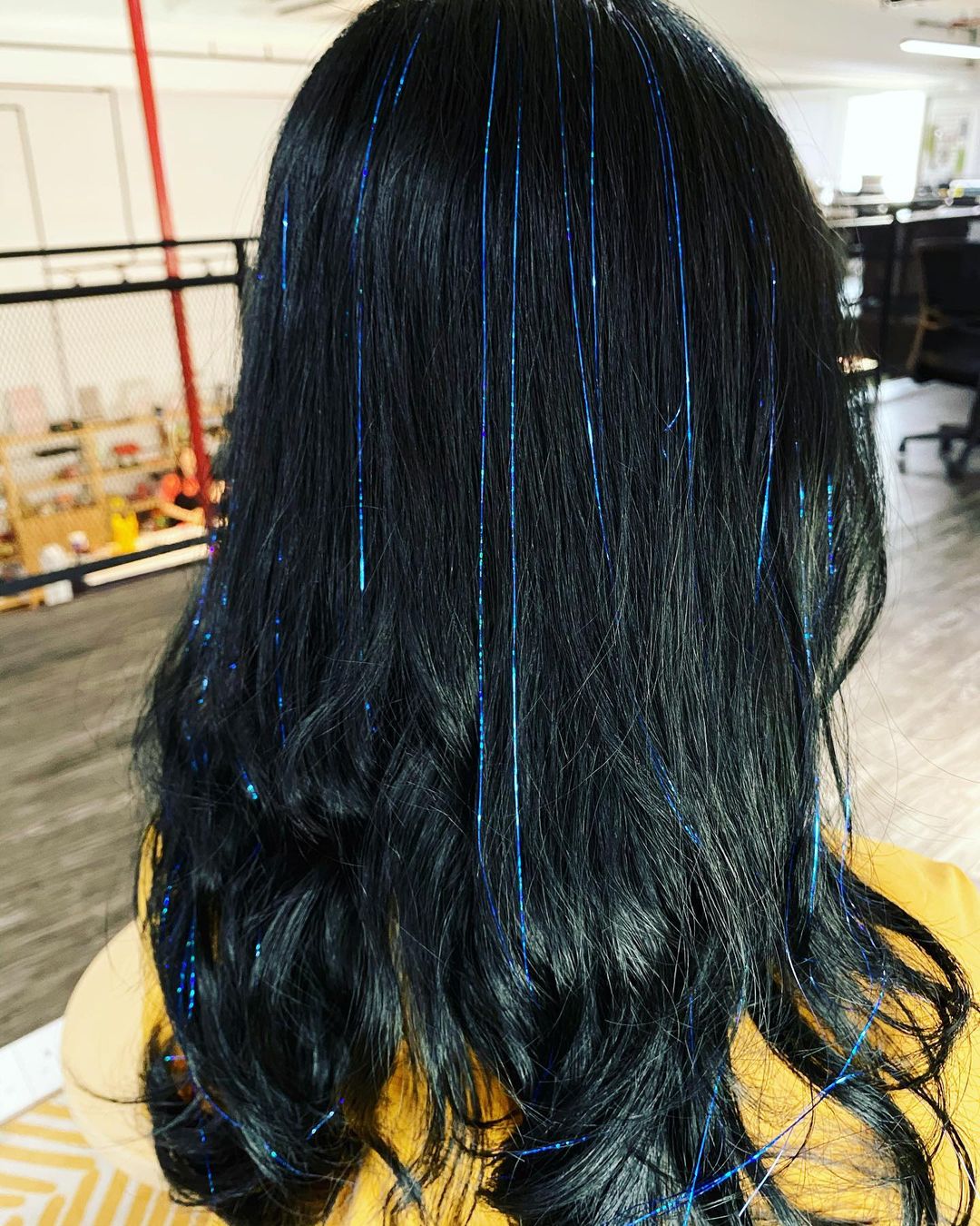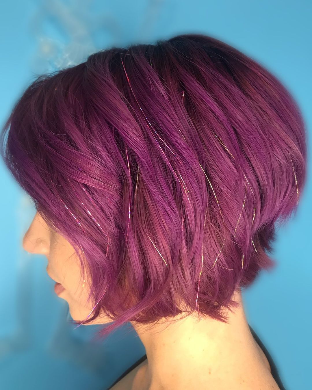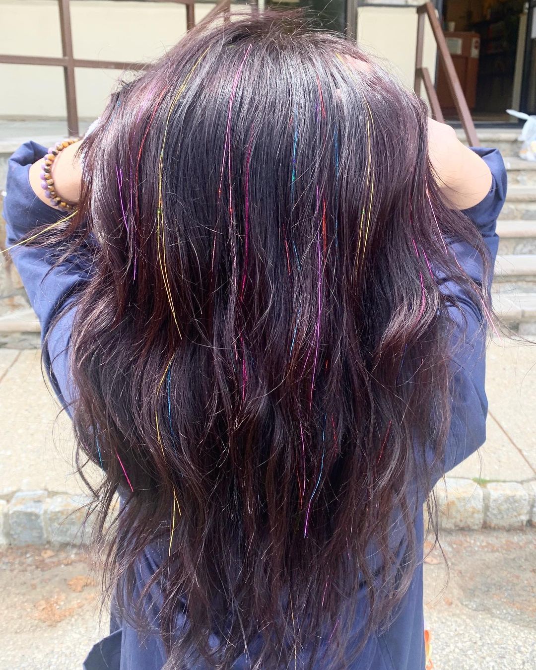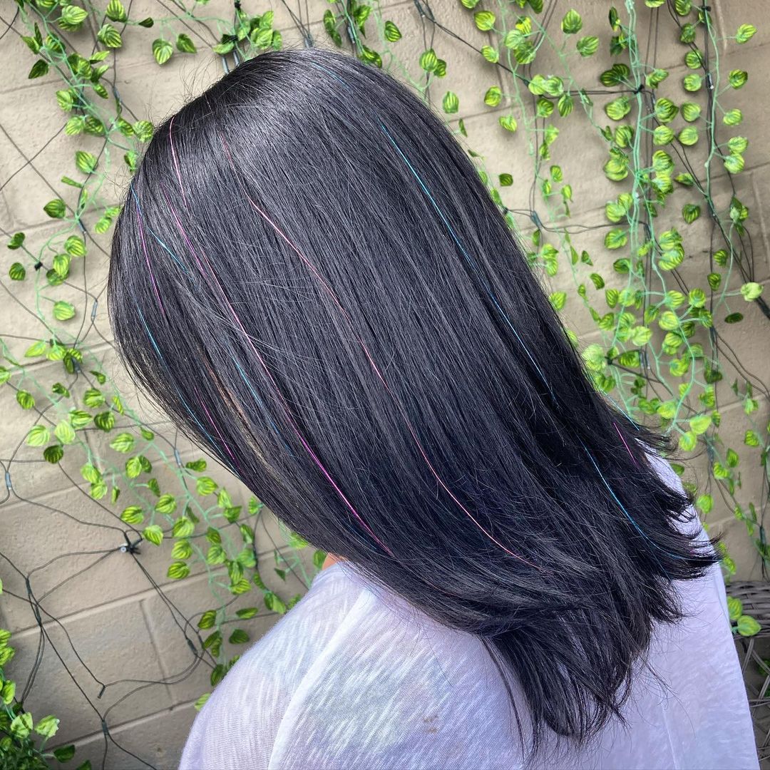 If you’ve already got vivid hair color, adding tinsel will make it look even more incredible.