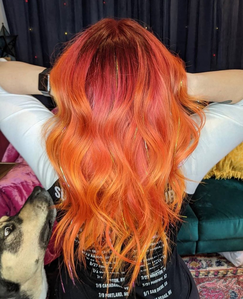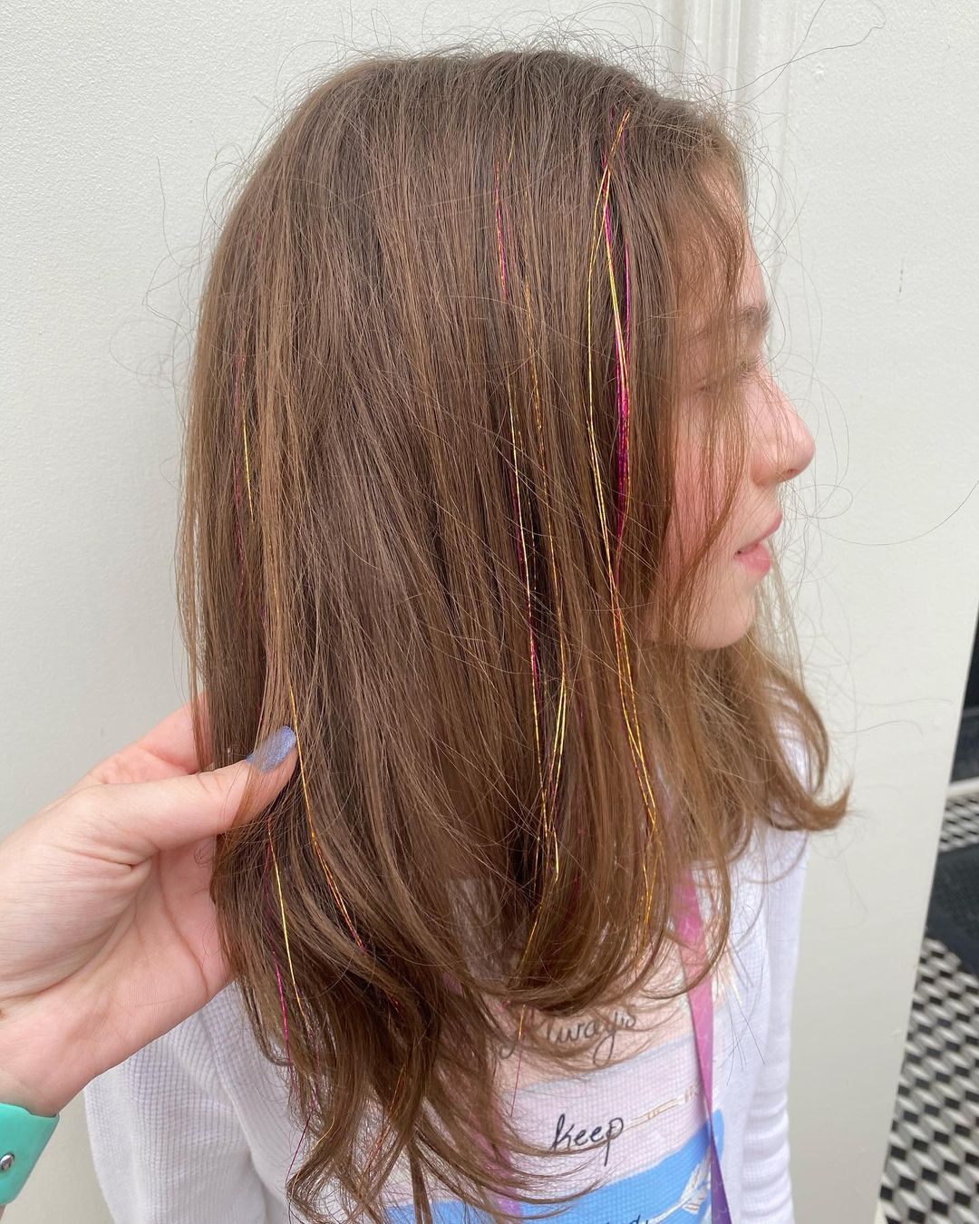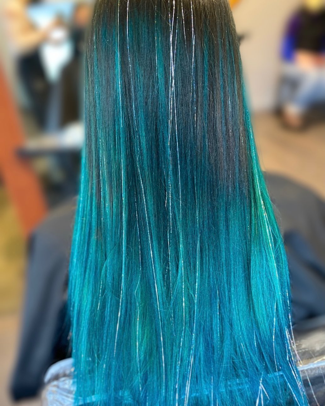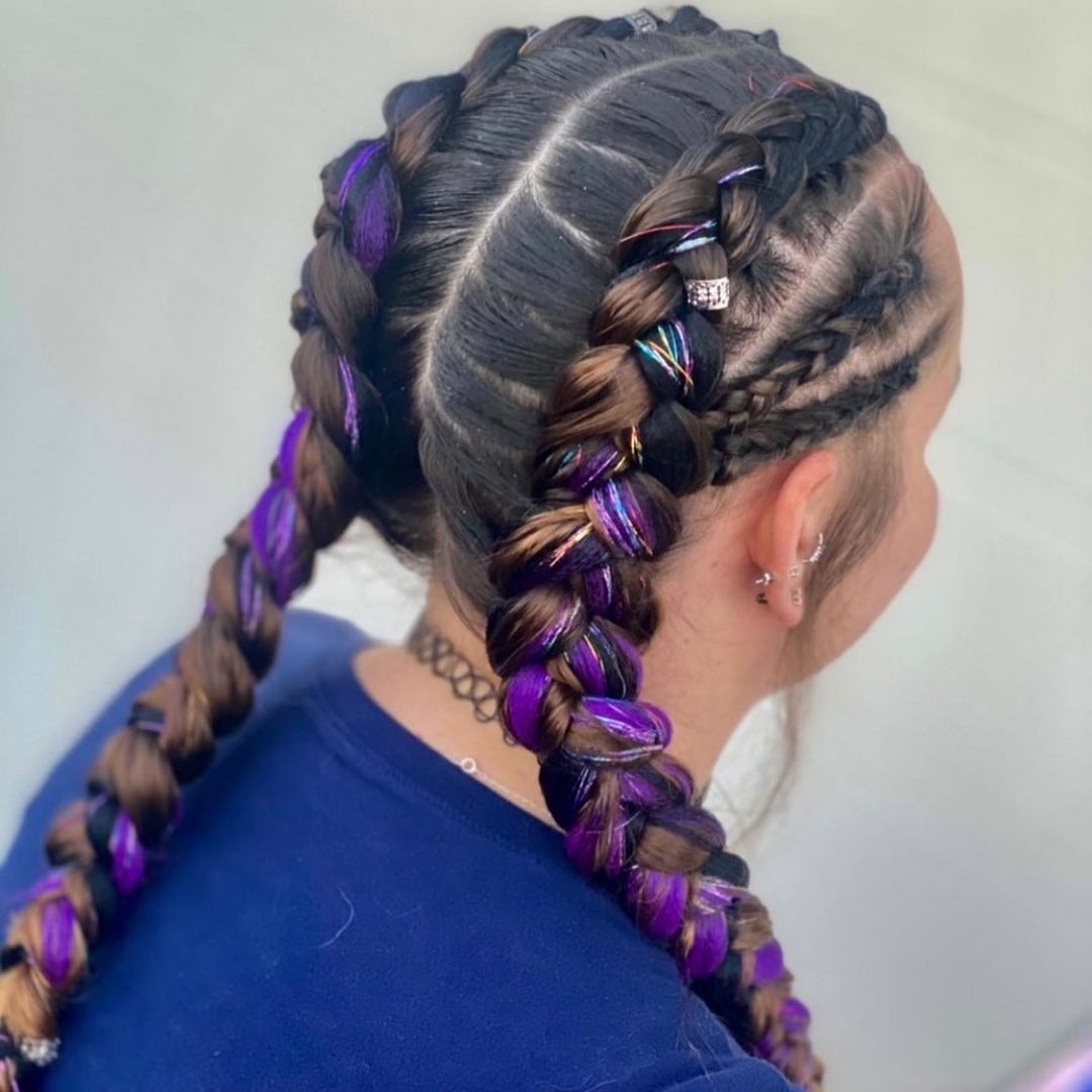 If you’ve already got vivid hair color, adding tinsel will make it look even more incredible.