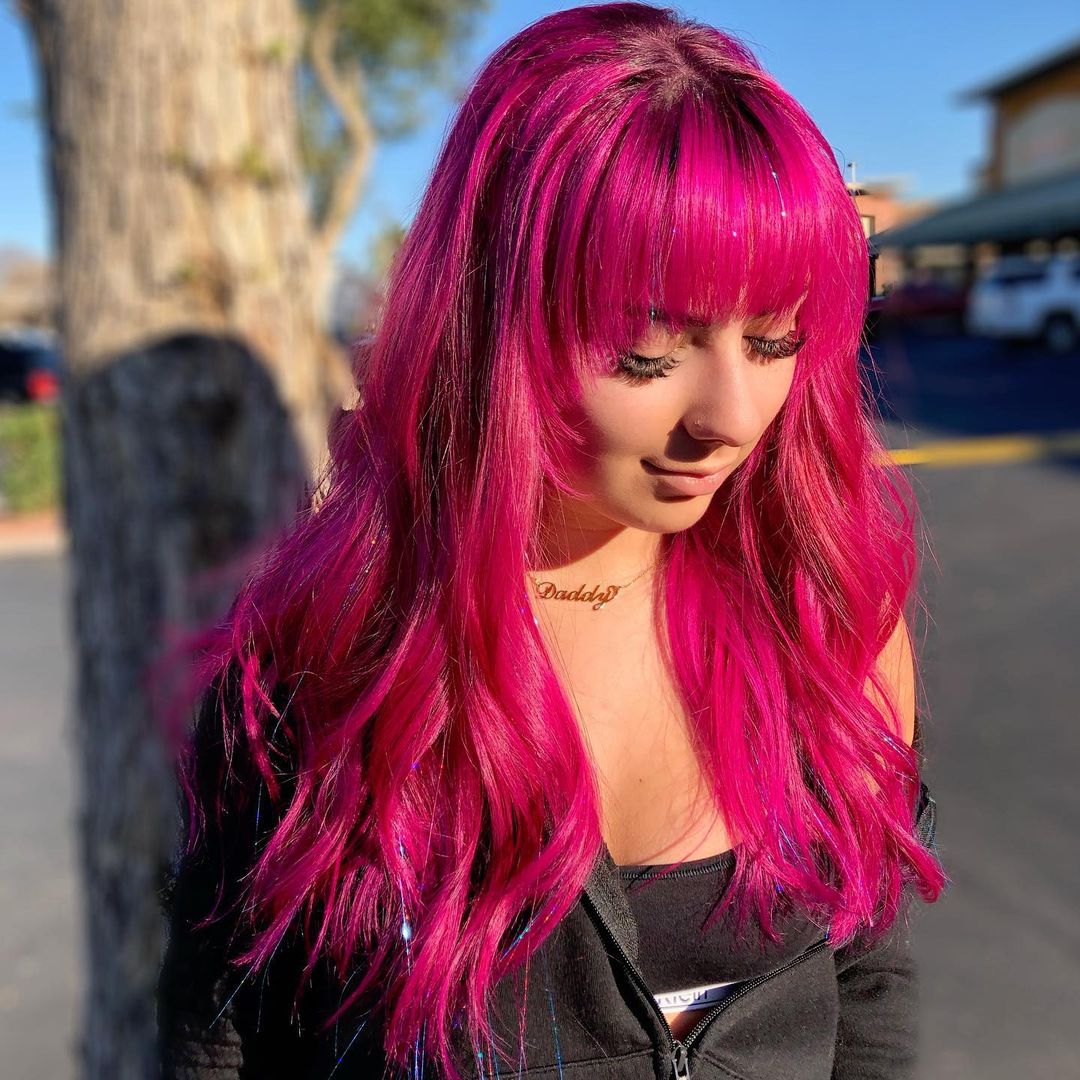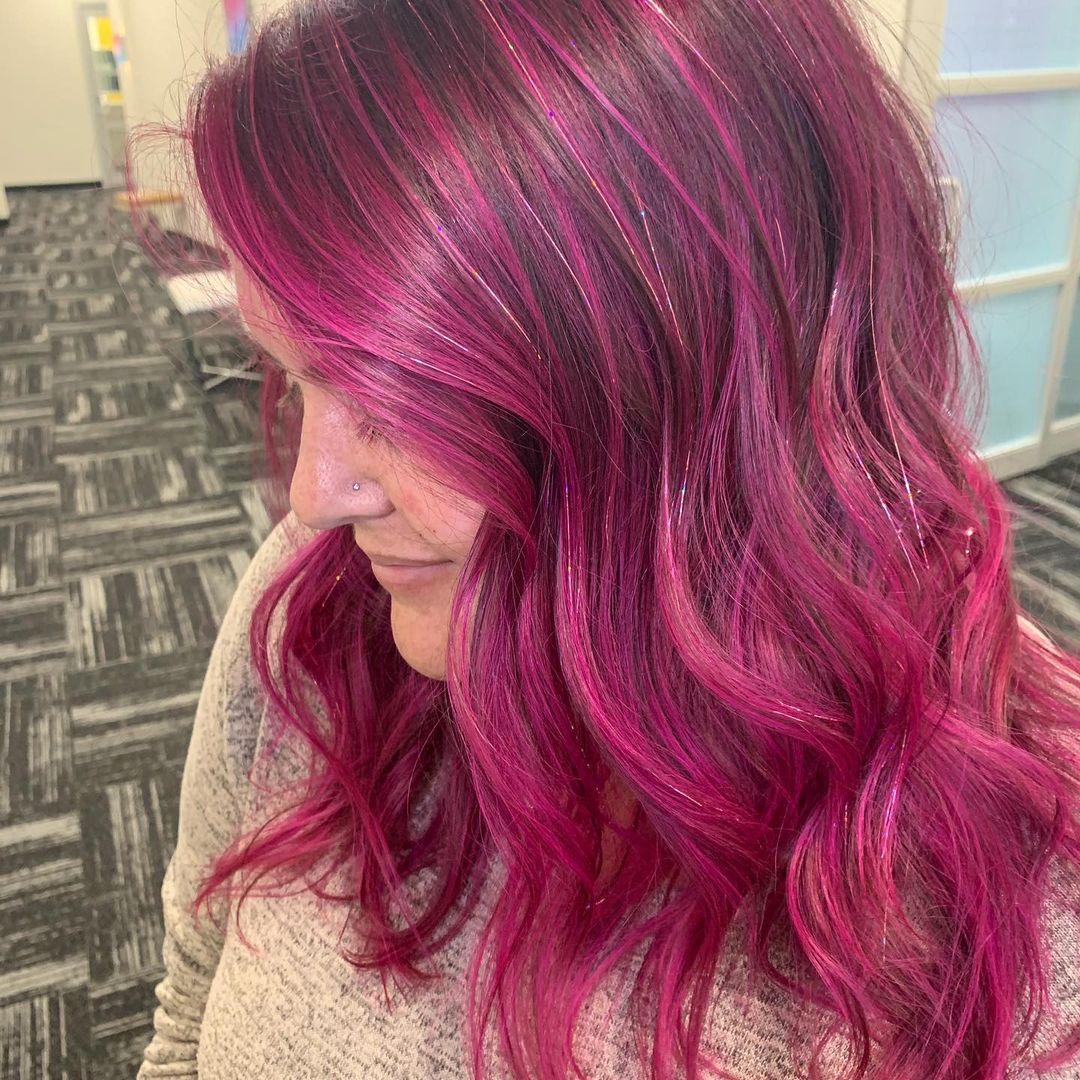 Let your pink hair really sparkle and shine with a little bit of added tinsel.