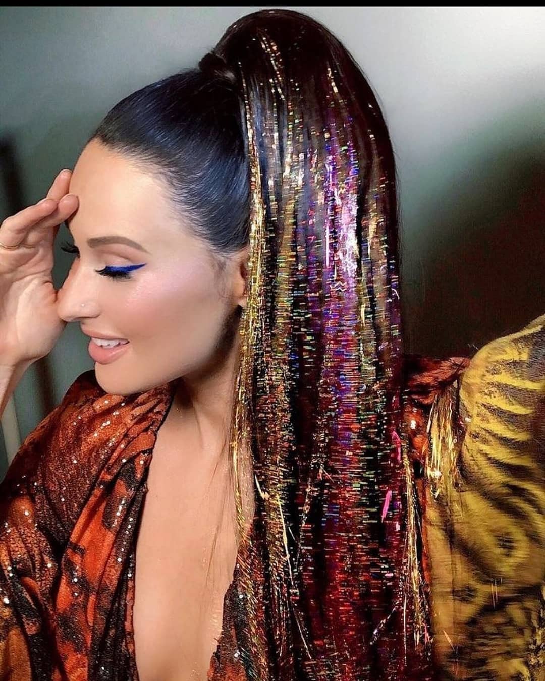 Talk about brightening up your strands! Adding some tinsel like this really brings the heat.