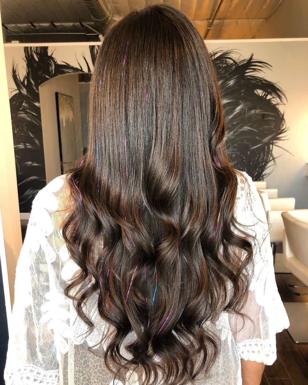 The way silver tinsel pops in dark hair is just perfection. It’s a simple combo that makes such a statement.