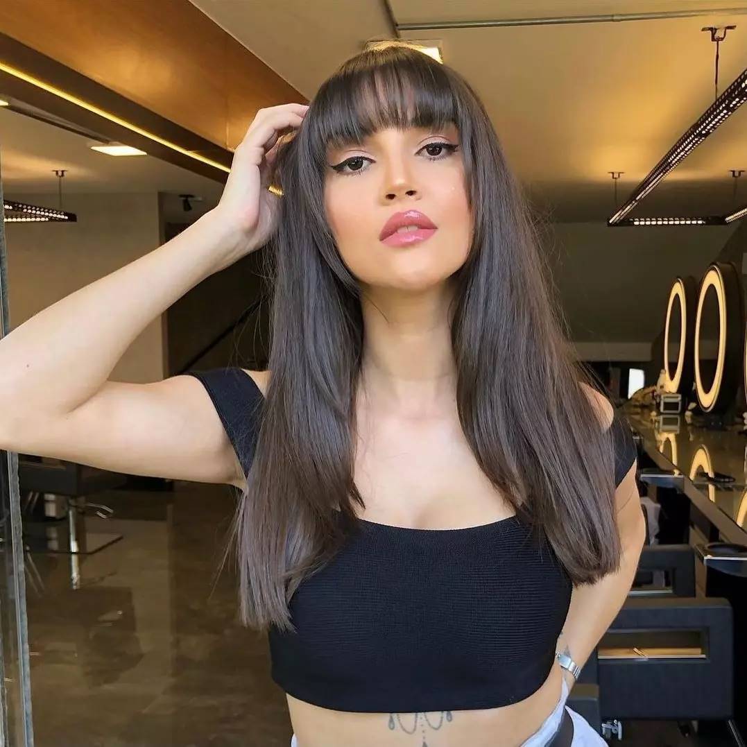 A pair of wispy bangs with straight black or dark brown hair is a look that I think suits younger women and trendsetters the most. It’s so chic!