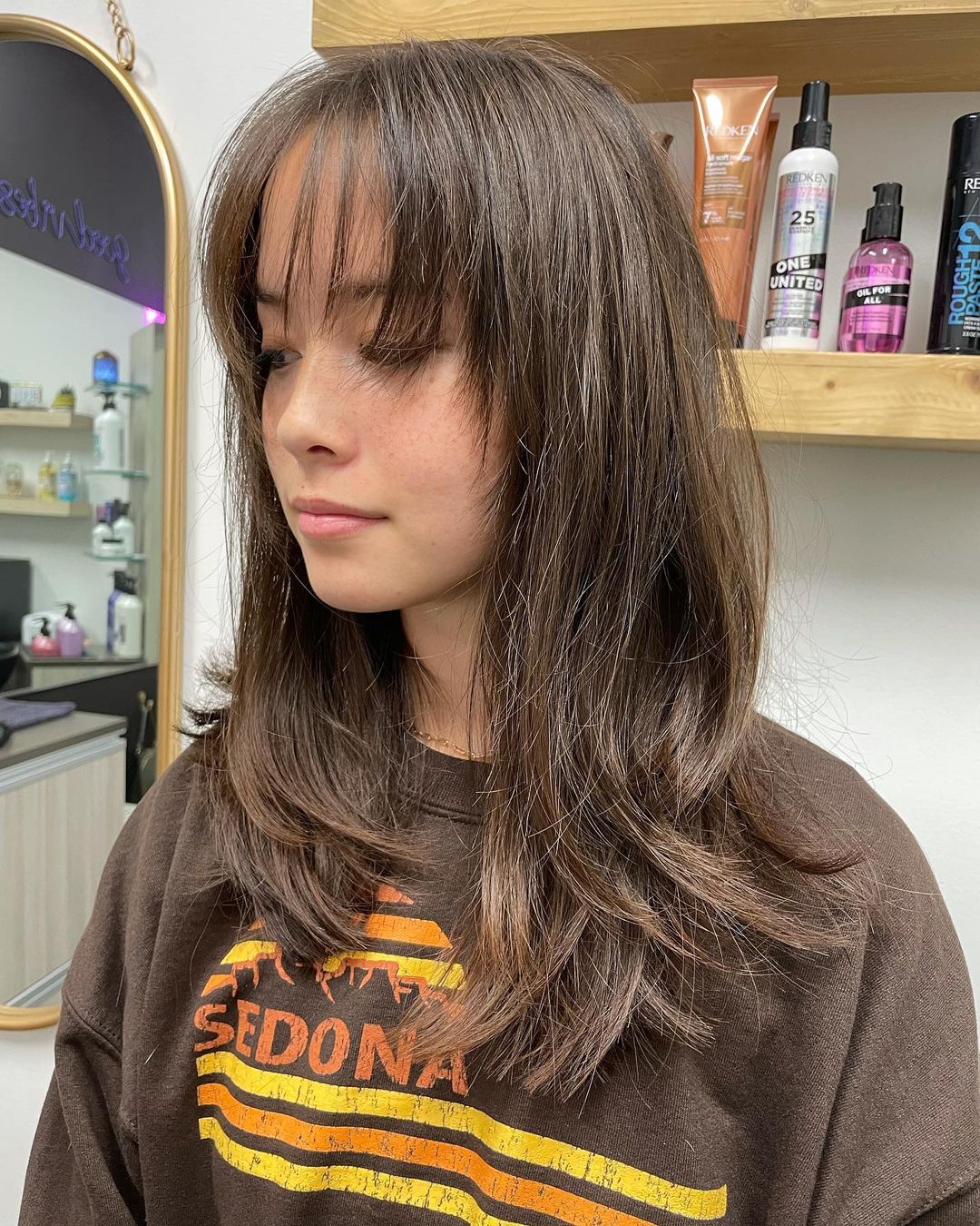 If you happen to have an oval face, you should consider adding these wispy bangs. They do such a beautiful job of framing your face.