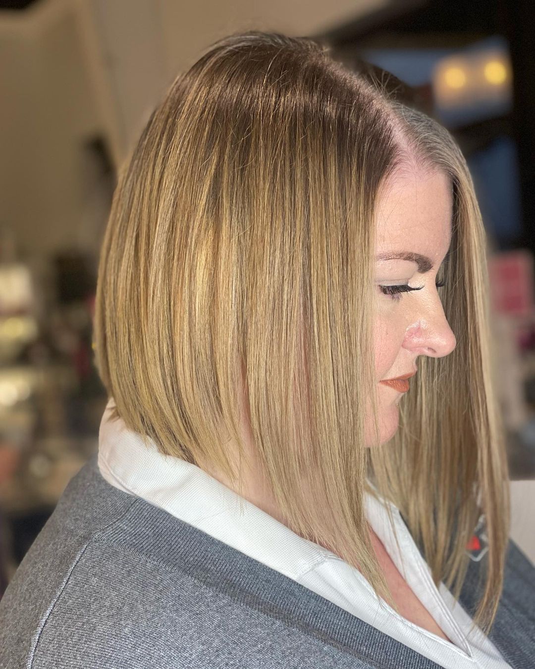 Angled bobs have become such a popular hairdo, and for good reason! They are a fantastic choice for anyone with a round or oval face shape.