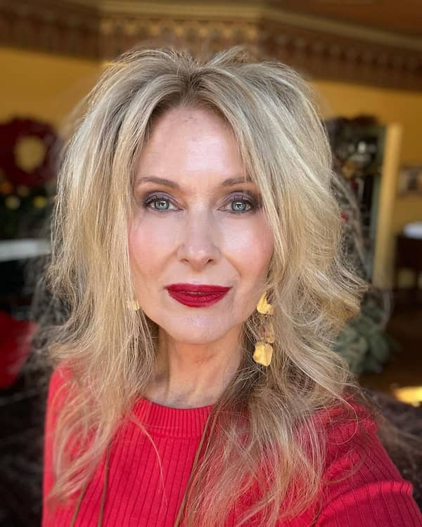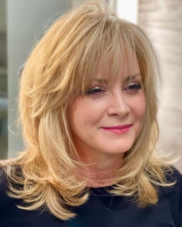 The tousled waves create great volume, and the bangs frame your face perfectly. It ensures you look pretty and put-together from morning coffee to evening wine.
