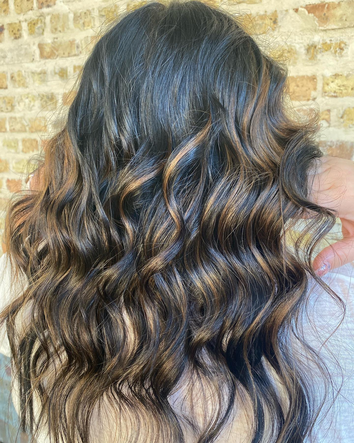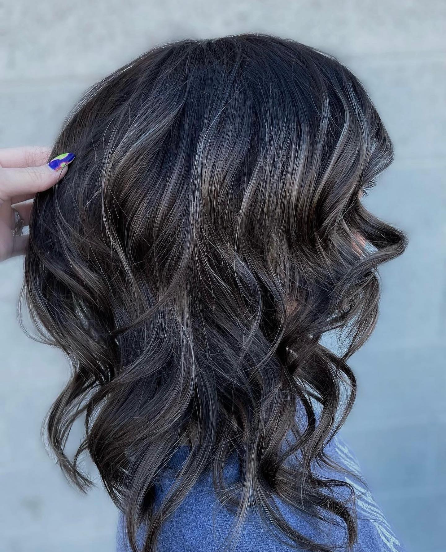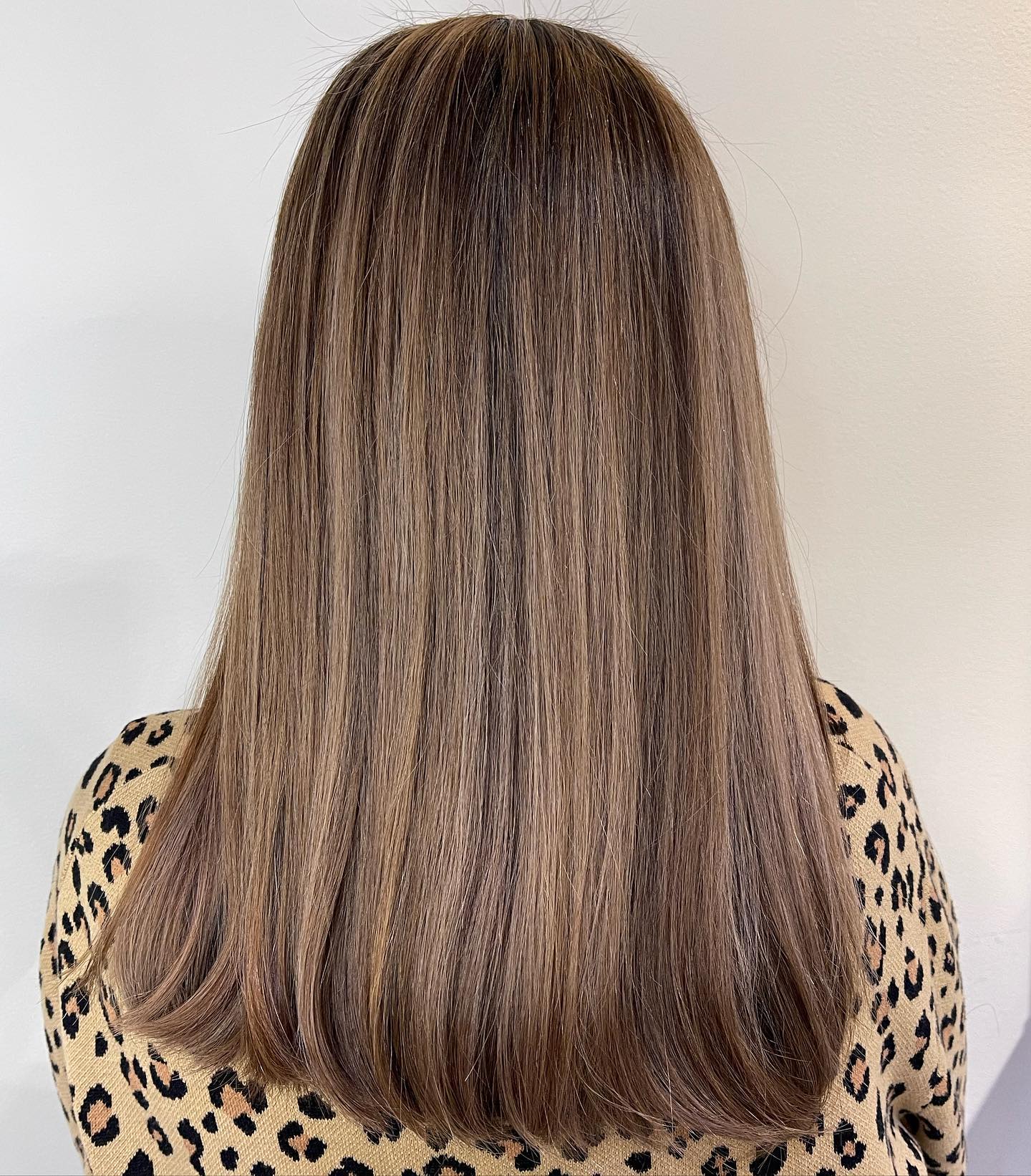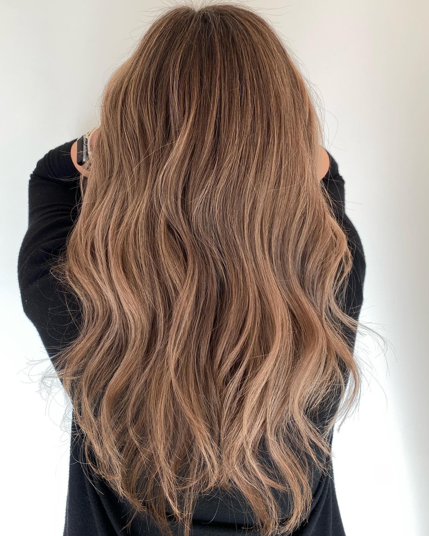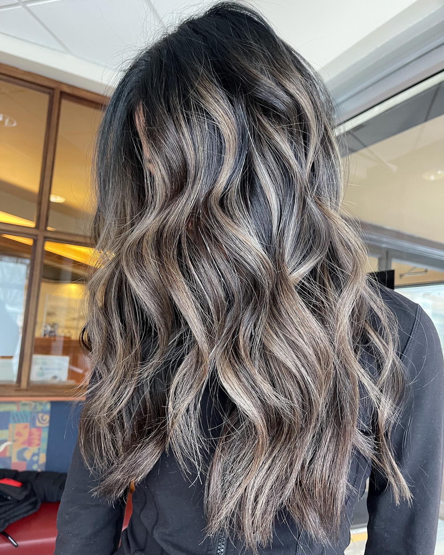 I love these chocolate brown mushroom highlights for freshening up a look. If you’re a fan of warm-tone ideas and enjoy stylish hairdos that are popular for the summer, this is it!