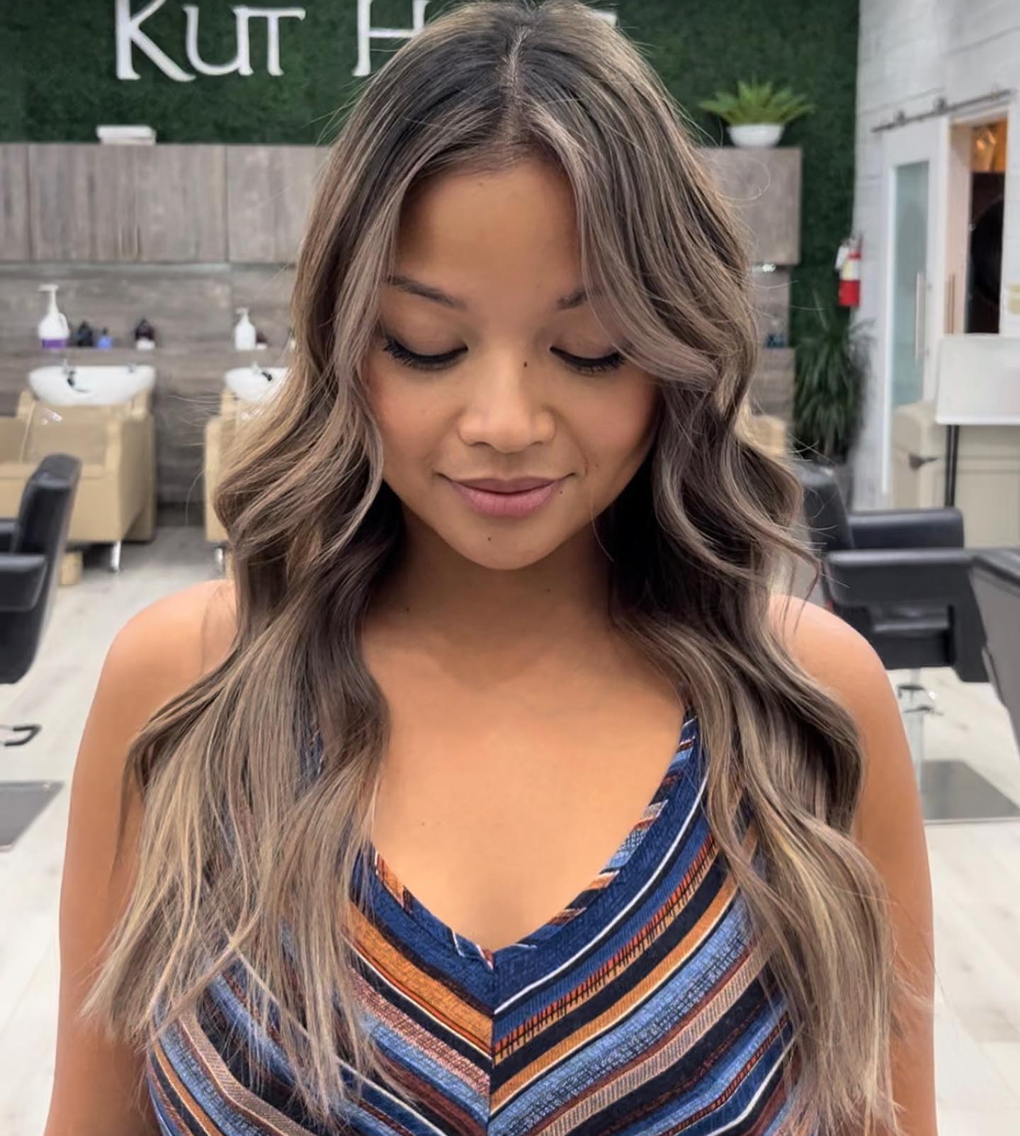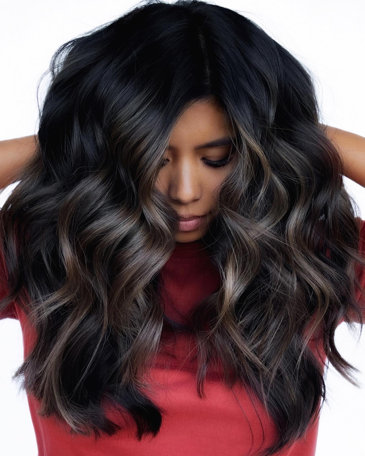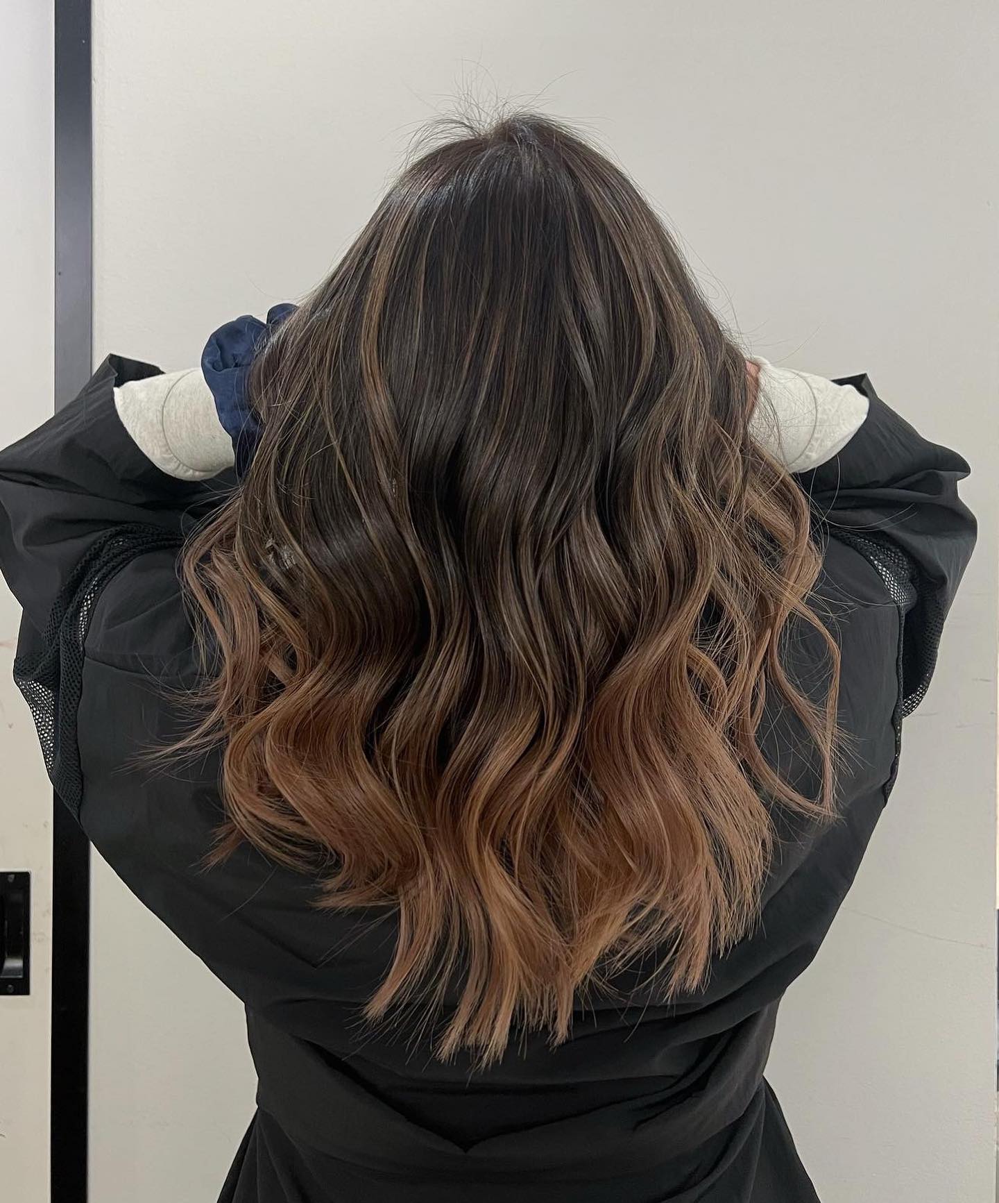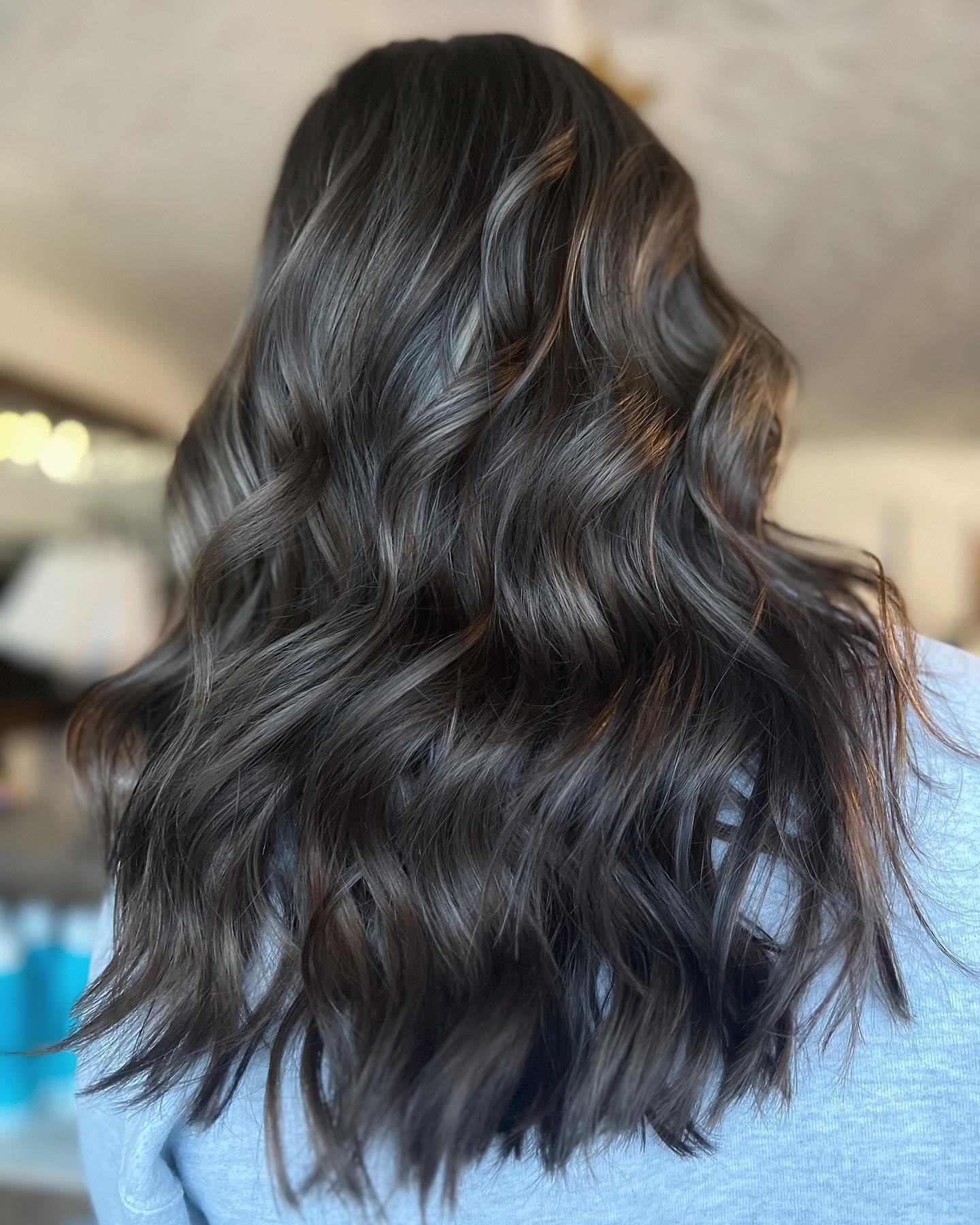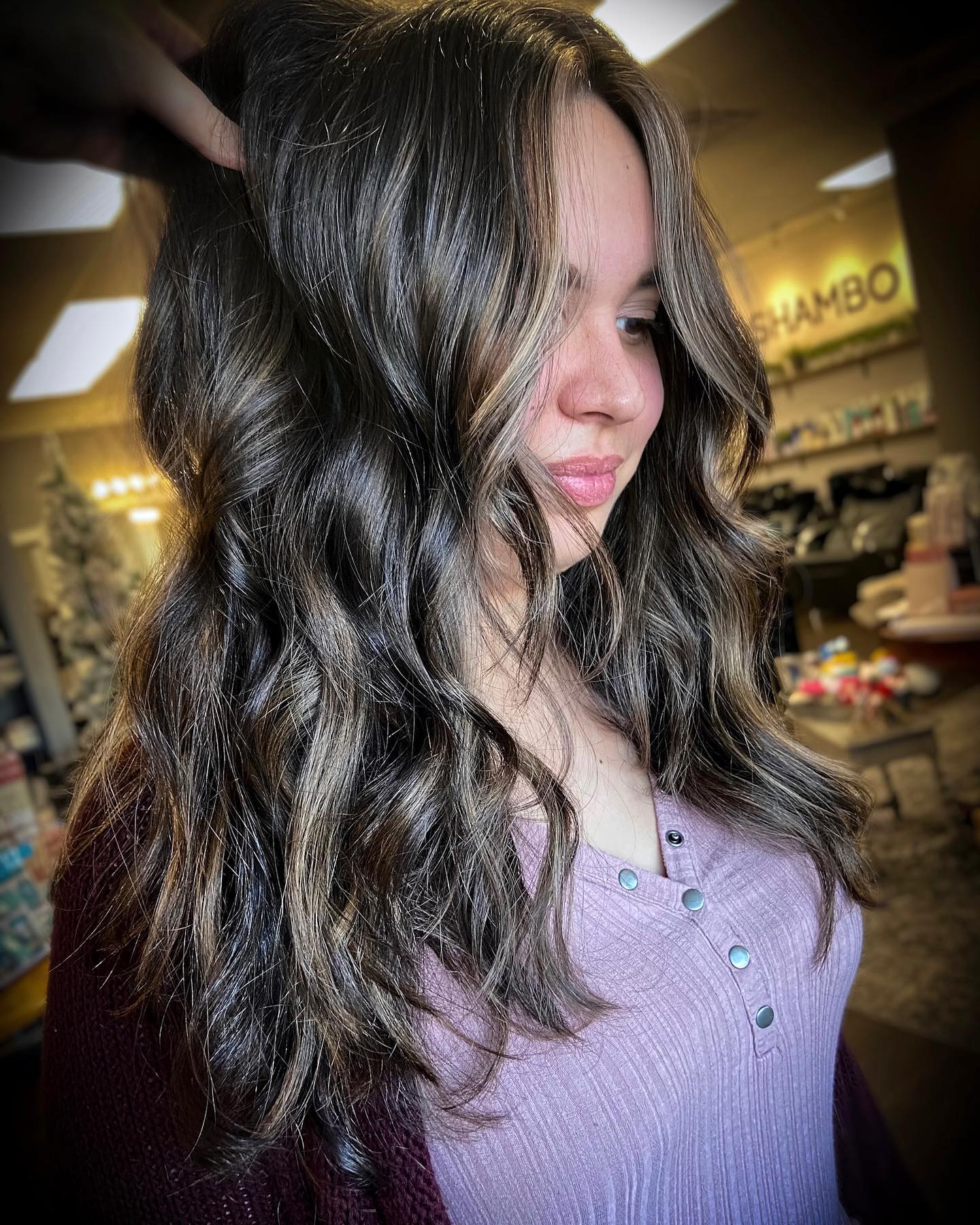I love these chocolate brown mushroom highlights for freshening up a look. If you’re a fan of warm-tone ideas and enjoy stylish hairdos that are popular for the summer, this is it!