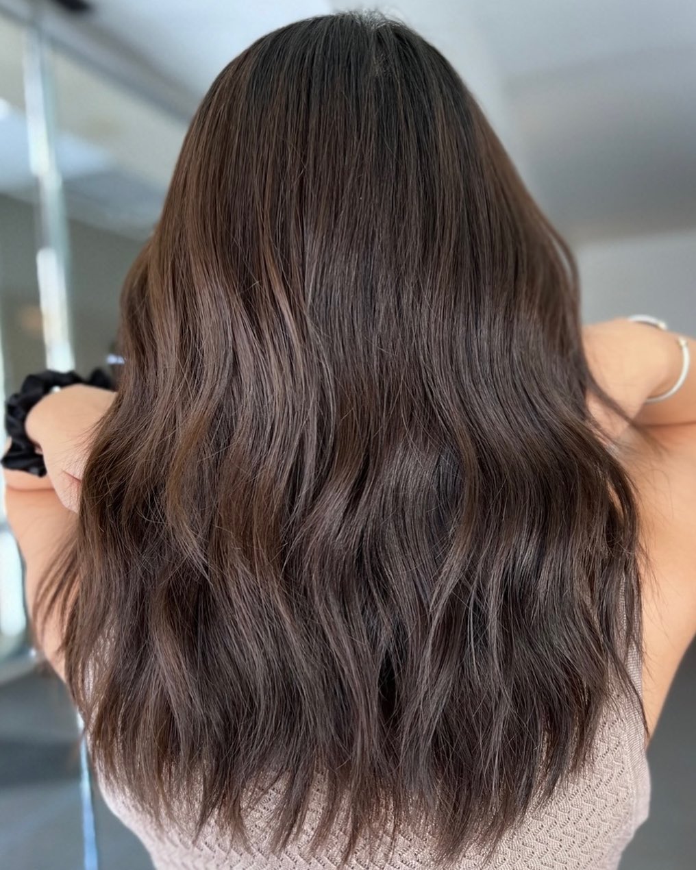 Long, brown, and healthy sleek hair like this is such a subtle beauty to try out.