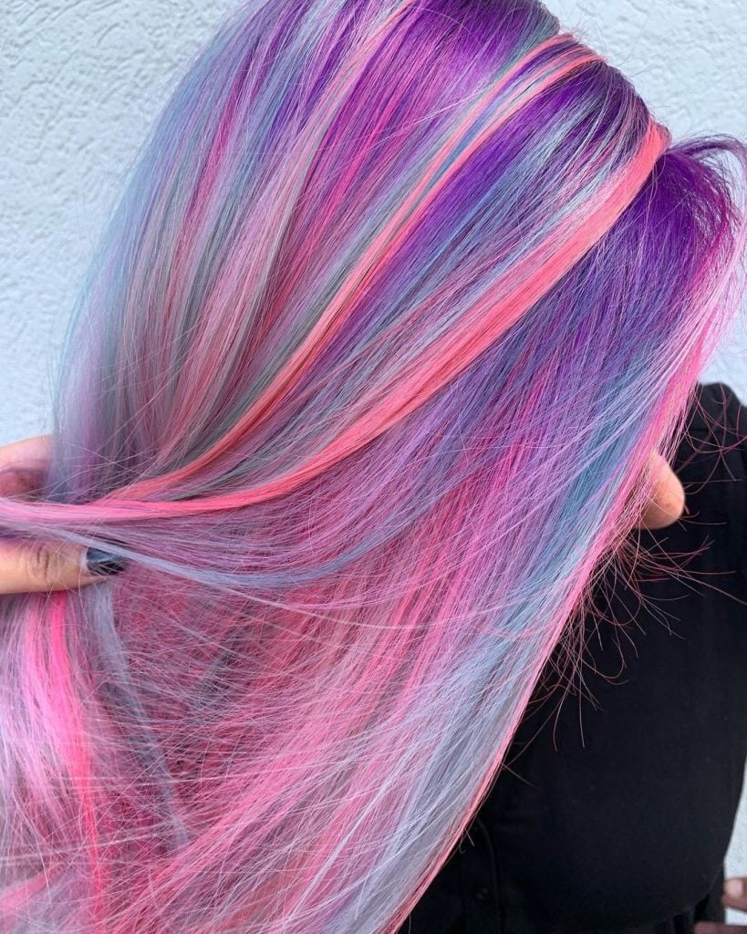 Melt a stunning bubblegum pink right into your hair. It’s such a beautiful and seamless look.