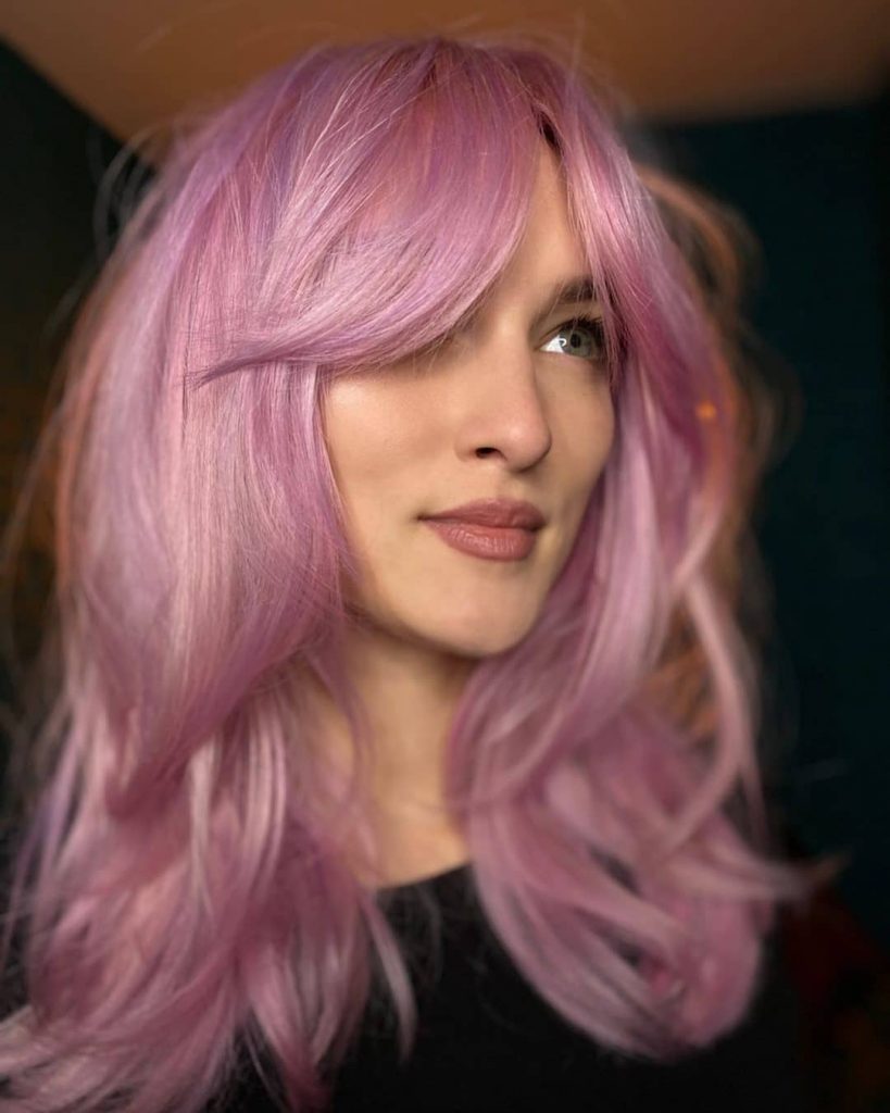Pastel pink is such a beautiful color to add to a lob haircut. It’s a personal favorite.