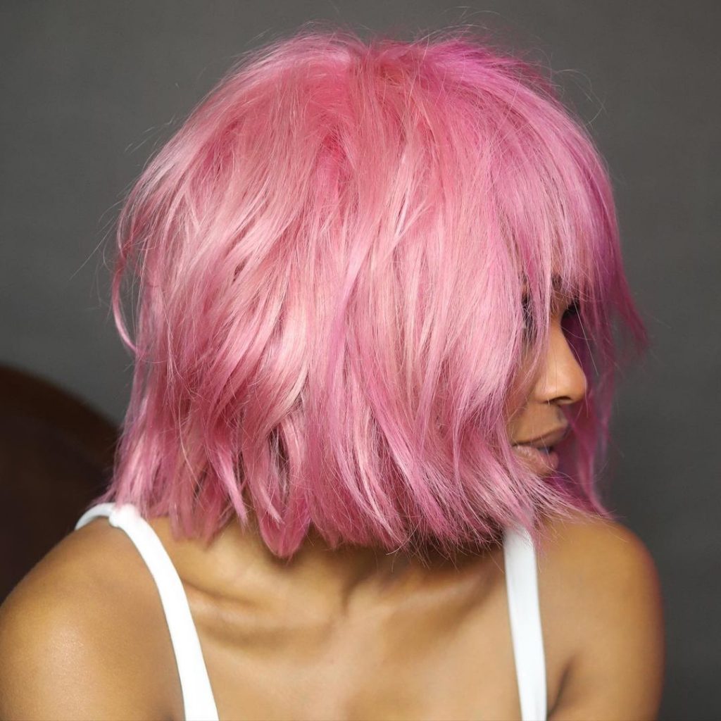 I love the idea of keeping your bob a little shaggy and then adding a stunning light pink to it. It’s effortless and cool.