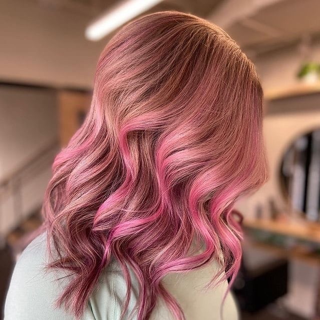 Not ready to commit to a full head of color? I get it. Adding just a little touch of pink is the perfect way to get some brightened strands.
