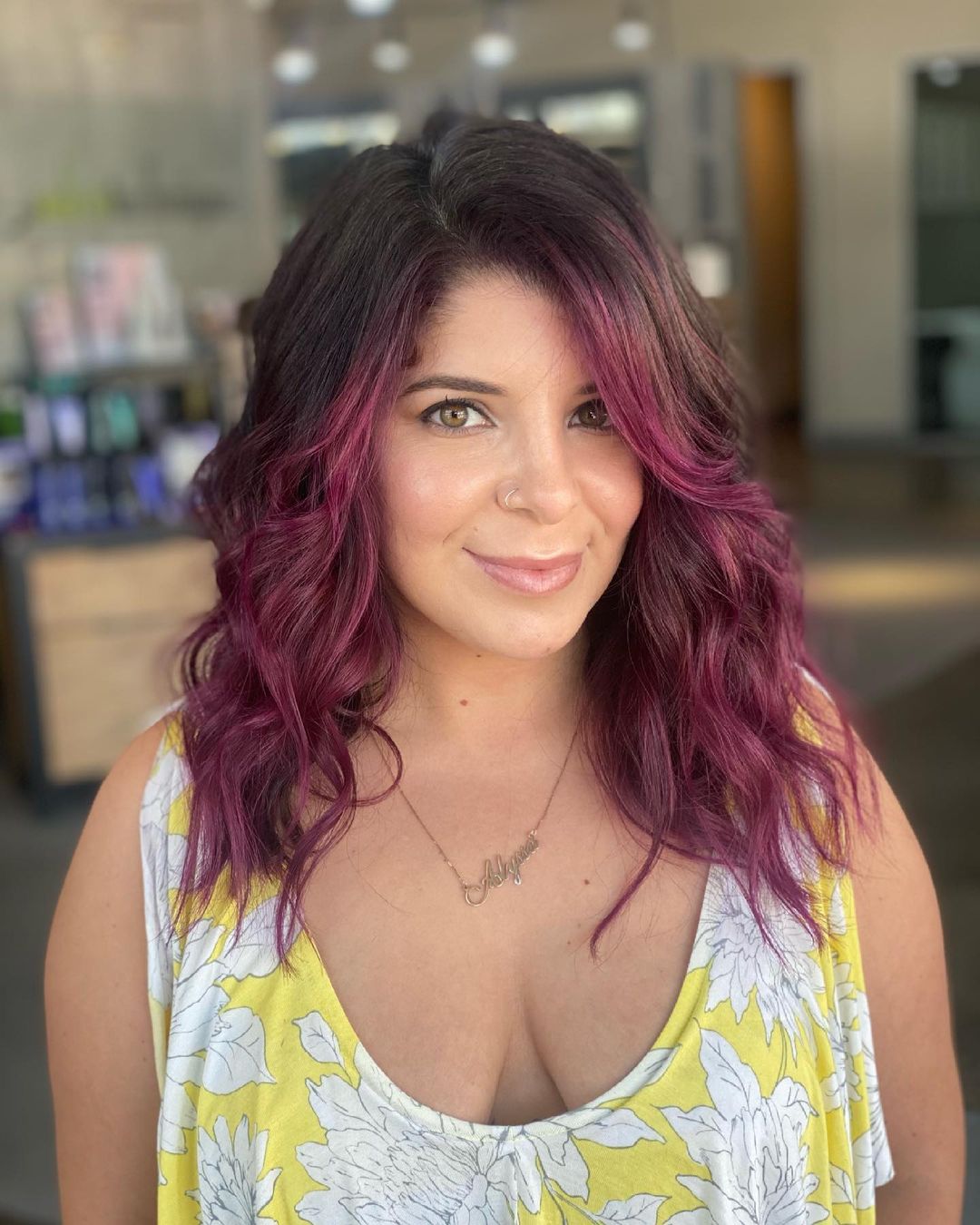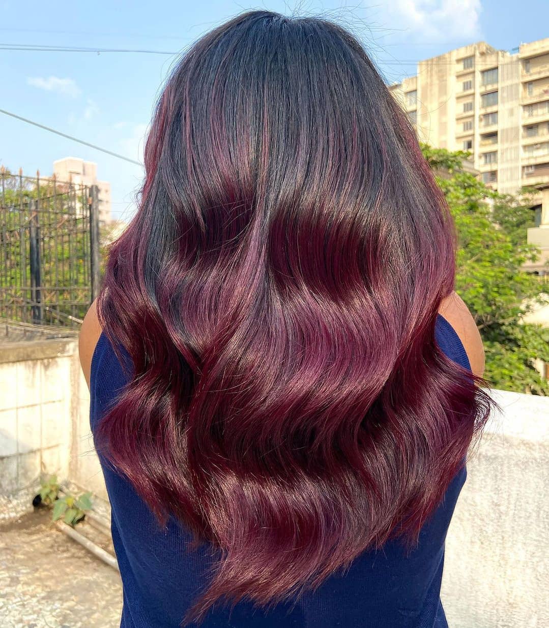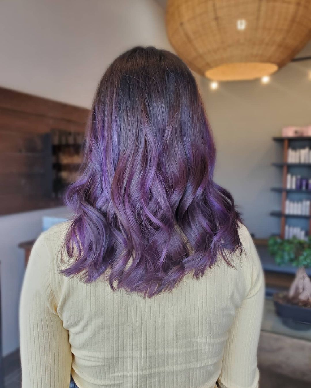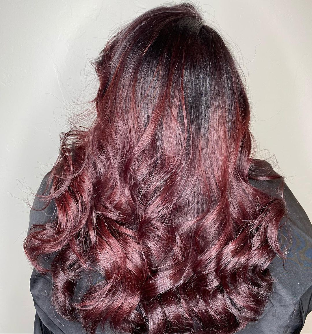 I am obsessed with this combination. Wavy hair paired with dark brown and plum highlights makes for the perfect casual look for every day.