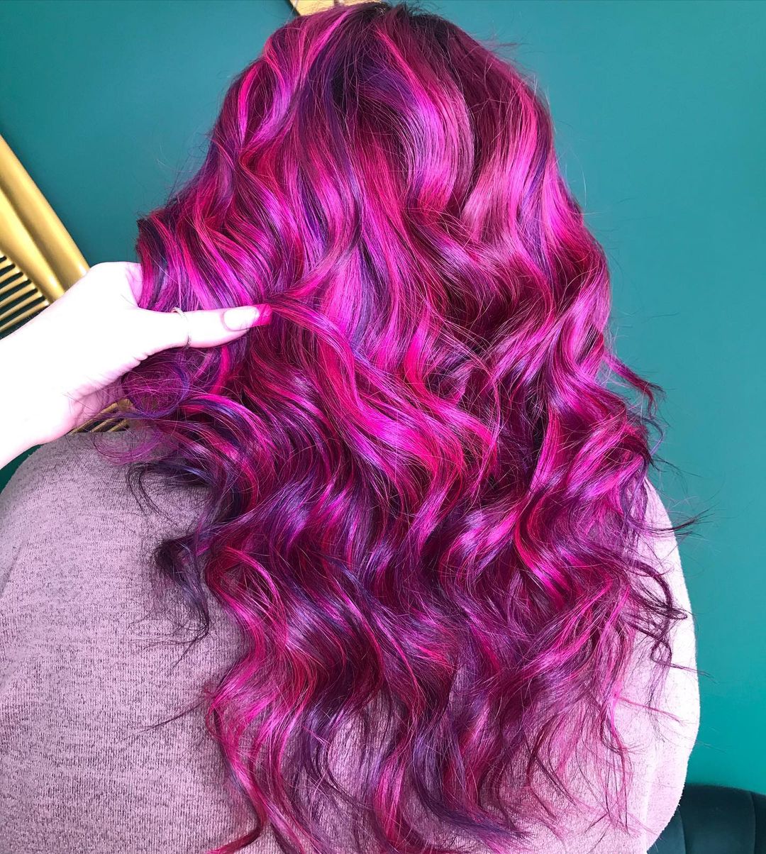 25. Vibrant Pink Hair With Plum Highlights