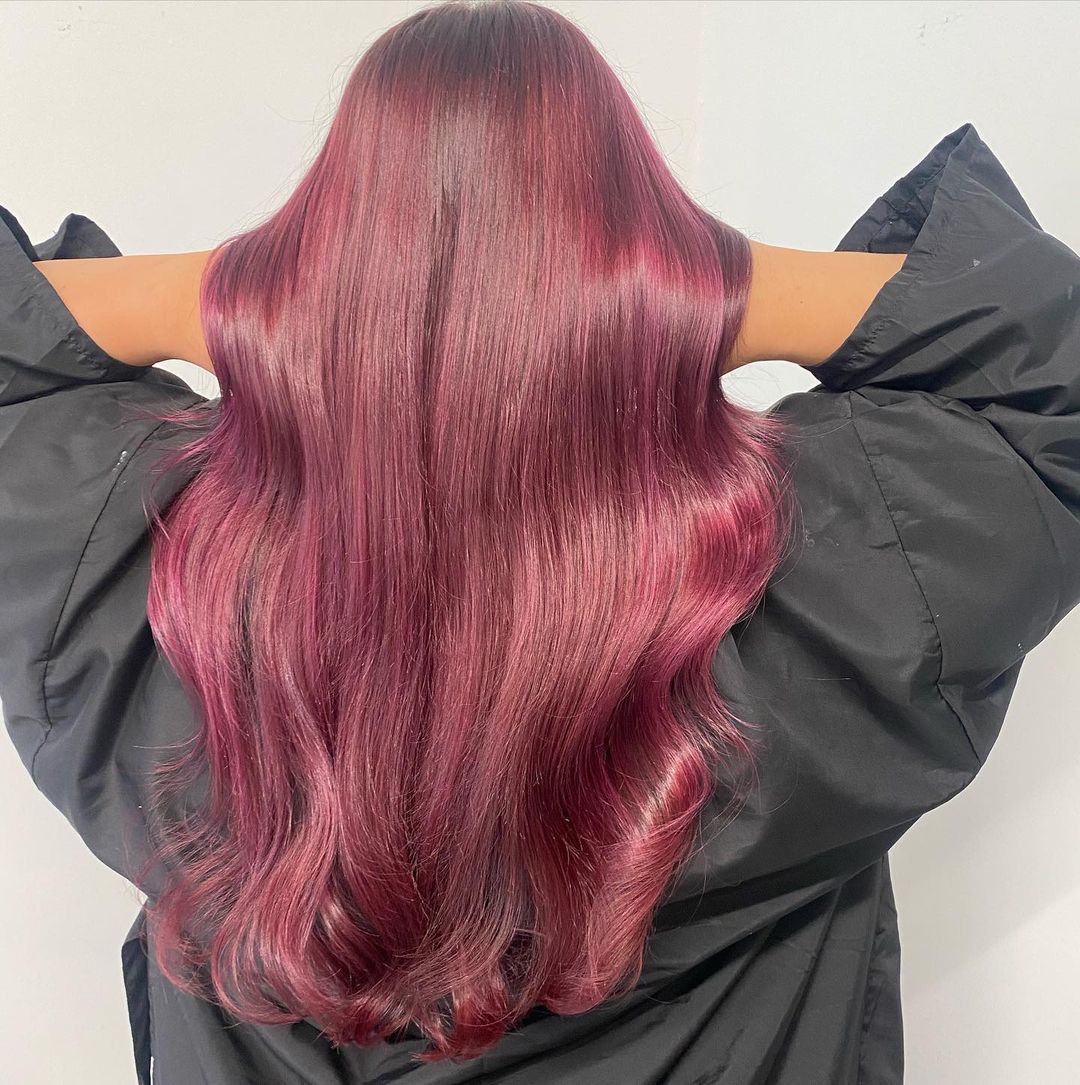 8. Silky Smooth Plum Hair Design