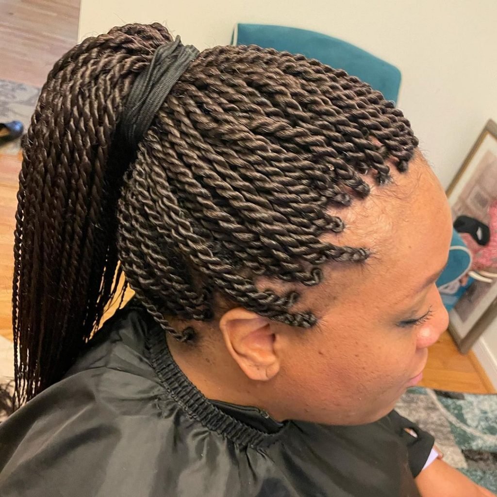 You can never go wrong with a classic high pony tail. It’s a timeless style that looks so amazing with Senegalese twists.