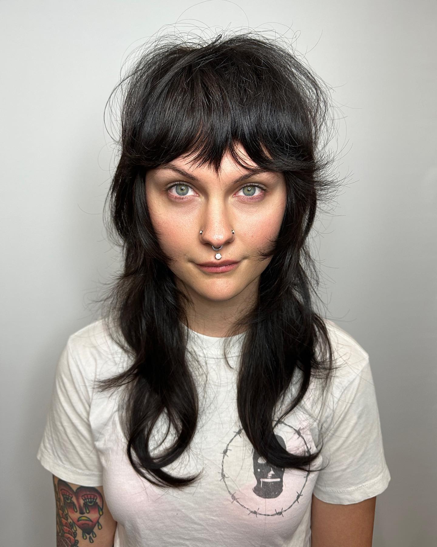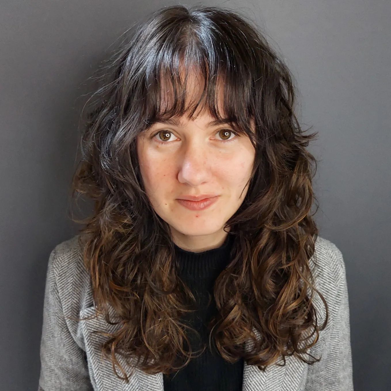 Go for shaggy bangs, as they perfectly compliment a shaggy hairdo. This style is quick and easy to pull off, especially if you have wavy hair. The final result is so versatile for formal or everyday moments.